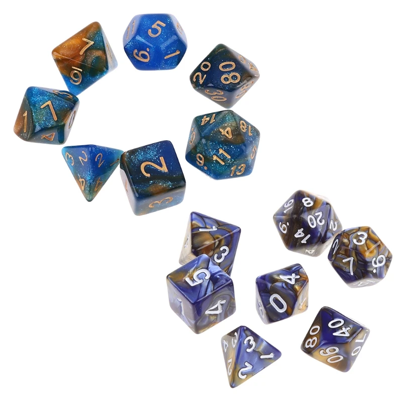 7 шт.компл. Dichromatic D4 D6 D8 D10 D12 D20 многогранные циферблат...