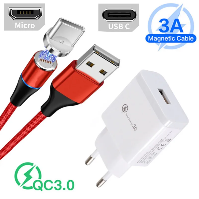 Быстрое зарядное устройство QC 3,0 usb с магнитным кабелем типа C д...