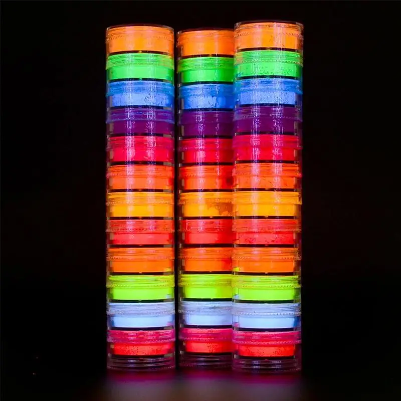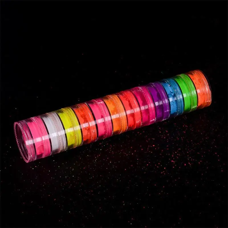 12 цветов, неон фосфор пудровый набор, блестящая пудра для ногтей, светящийся пигмент с блестками хайлайтер, темный флюорор N1A1