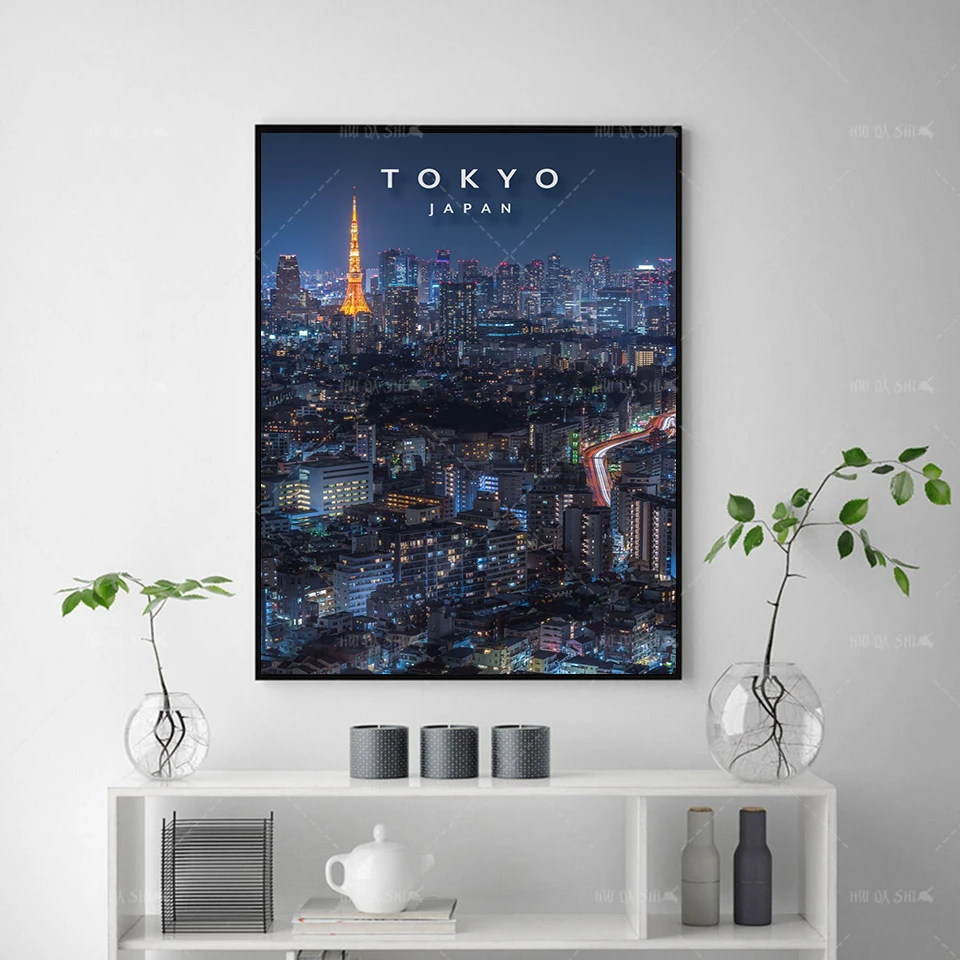Картина на холсте, принты Токио по ночному пейзажу, картина в скандинавском стиле для дома, для гостиной, Декор, настенная фотография, современный постер, подарок