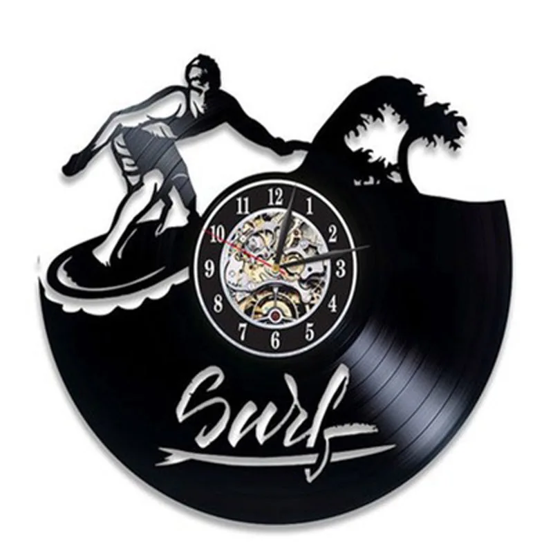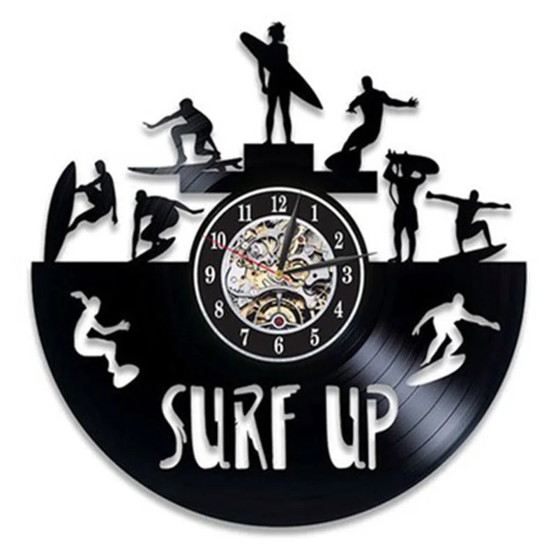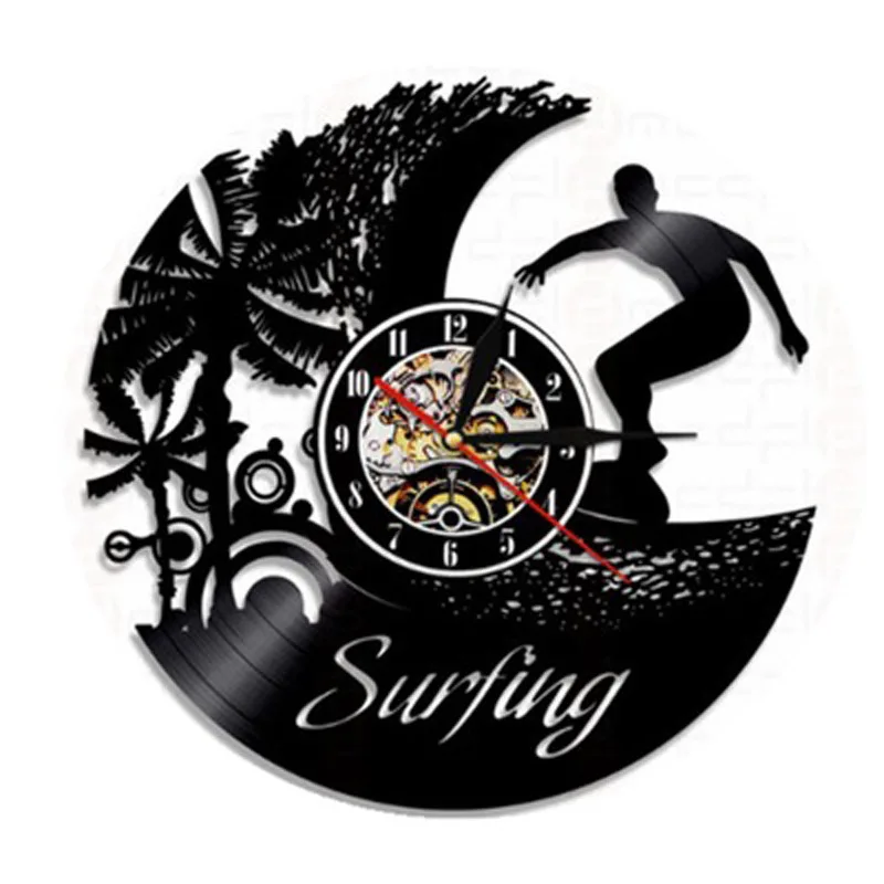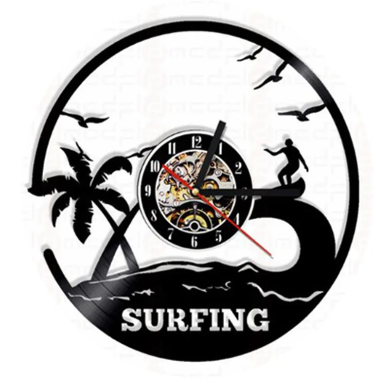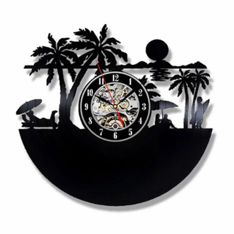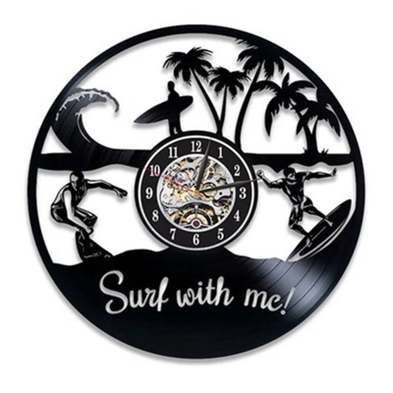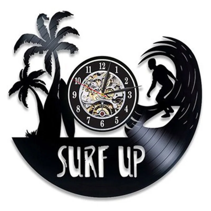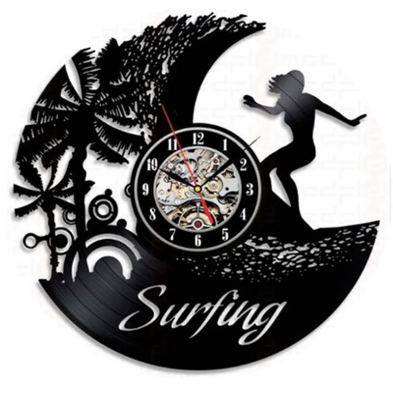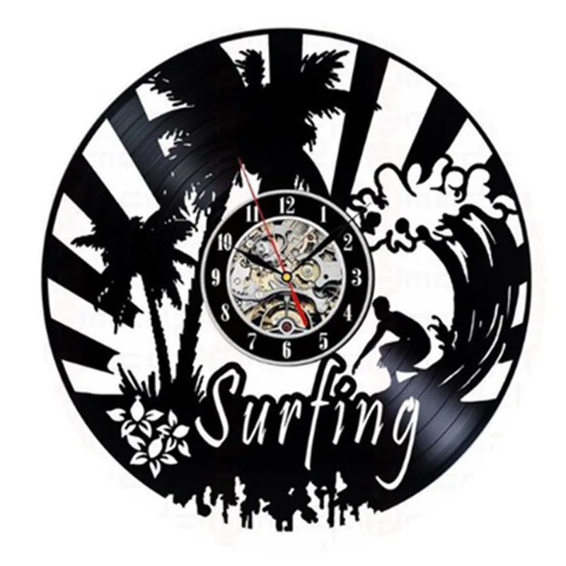 Винтажные настенные часы с виниловой пластиной для серфинга, летние пляжные часы с силуэтами и 3d-наклейками, настенные часы, домашний декор