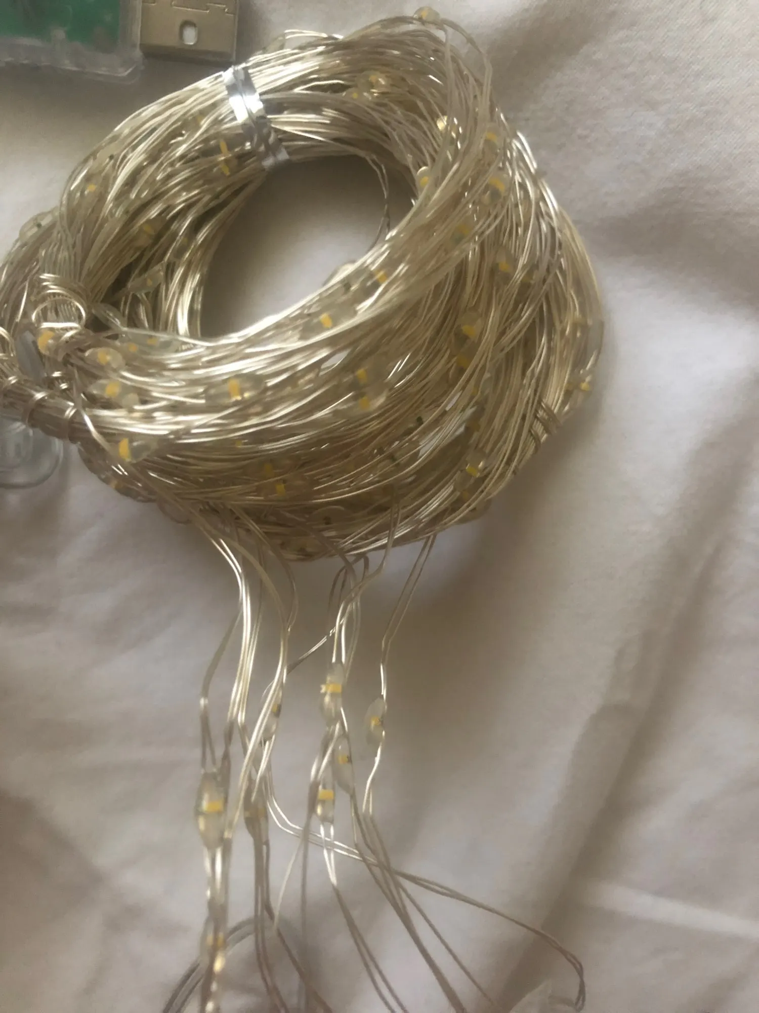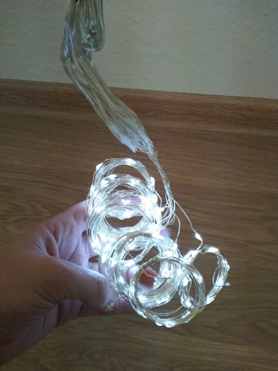 Гірлянда прийшла через 3 тижні після замовлення в чудовому стані, яскраво світить, але дуже тоненькі дротики. Є пульт дистанційного керування до якого треба ще купити батарейку.