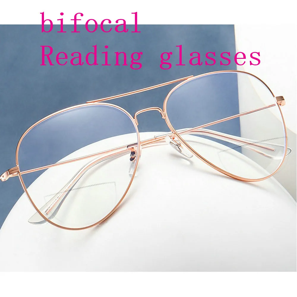 Большие металлические бифокальные очки для чтения, пресбиопические очки с защитой от сисветильник, прозрачные золотистые очки для мужчин и женщин, UV400 NX