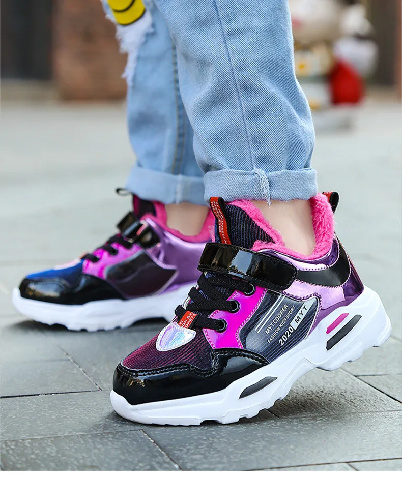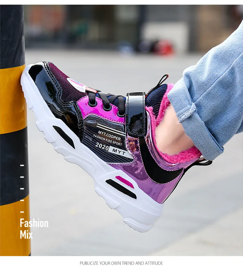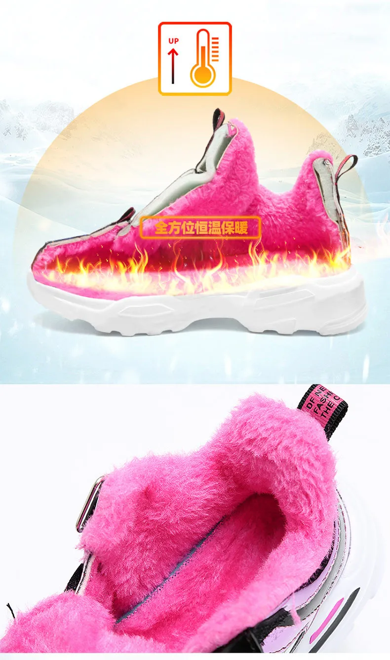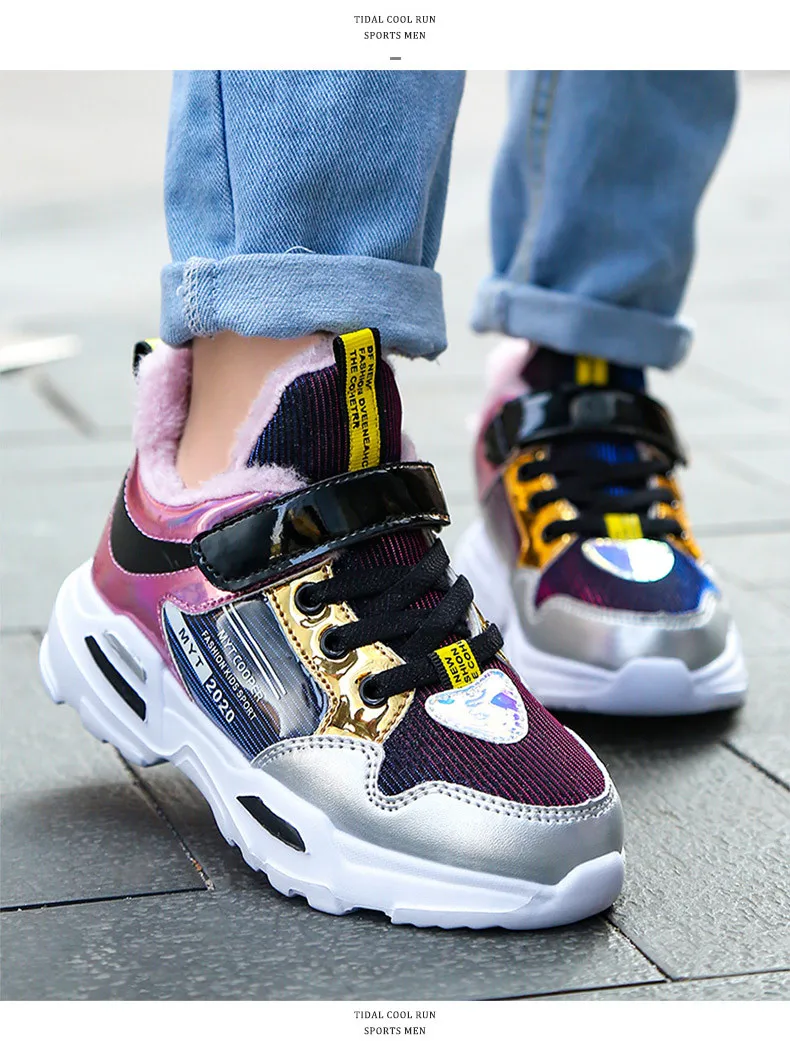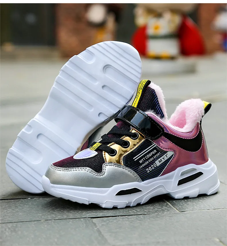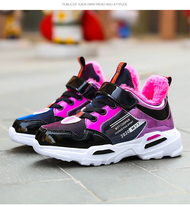Зимняя детская обувь для девочек, удобные плюшевые теплые детские кроссовки, модная повседневная спортивная обувь для бега для девочек