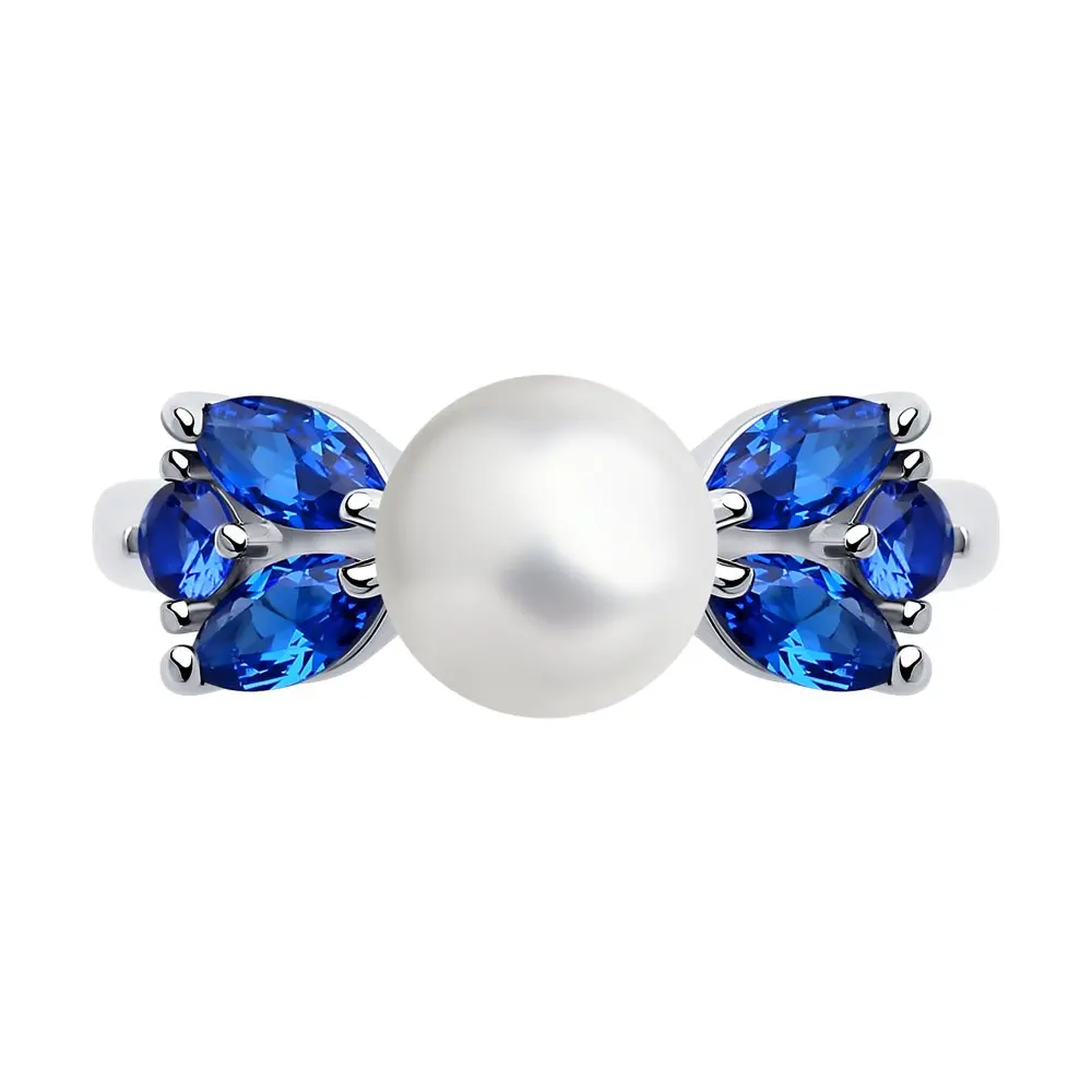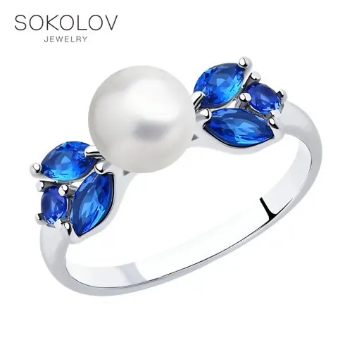 Кольцо SOKOLOV из серебра с жемчугом и фианитами