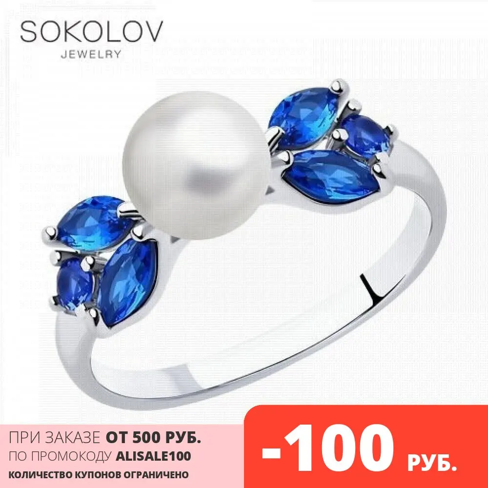 Кольцо SOKOLOV из серебра с жемчугом и фианитами, Серебро, 925, Женское, Оригинальная продукция