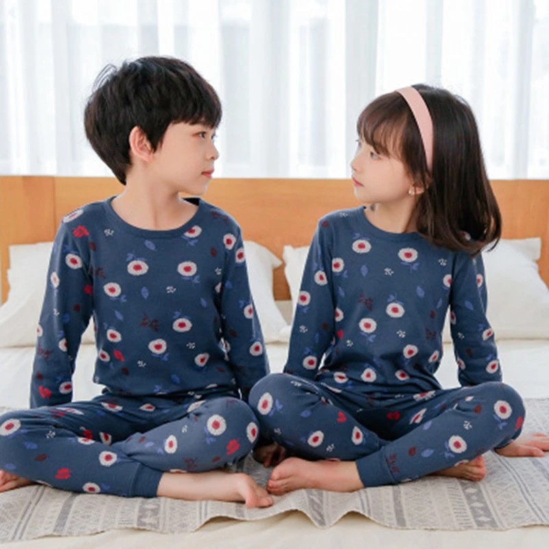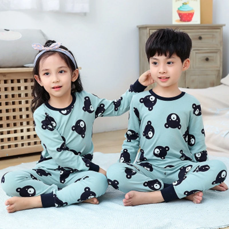 Зимняя хлопковая детская пижама, одежда для сна для мальчиков и девочек, одежда для сна с изображением животных, пижамный комплект, одежда для малышей