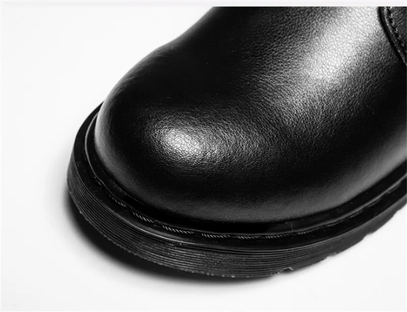 Ботинки мужские кожаные, зимние, на меху, черные, в стиле милитари