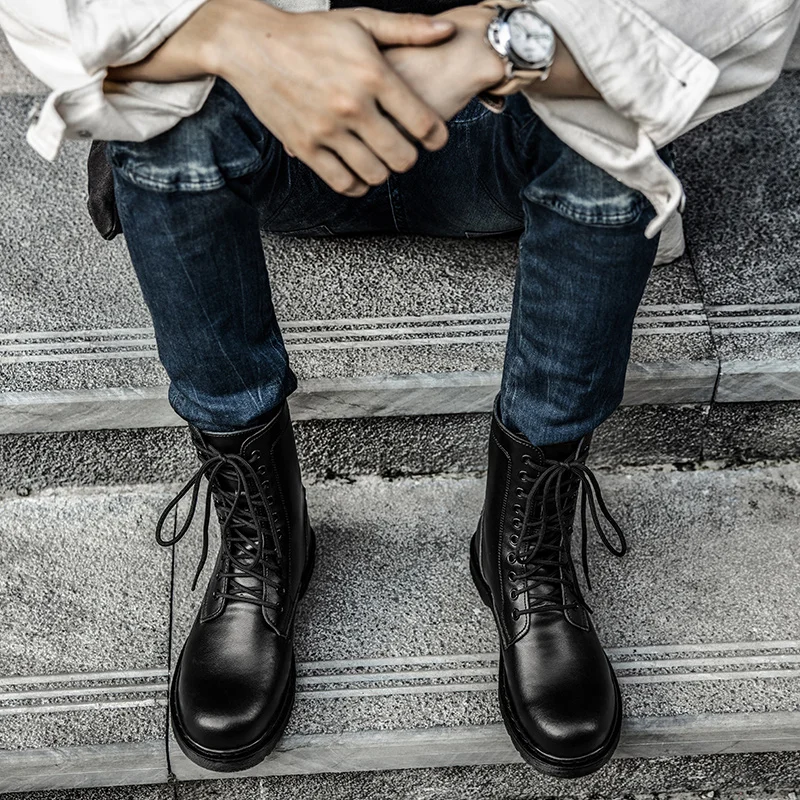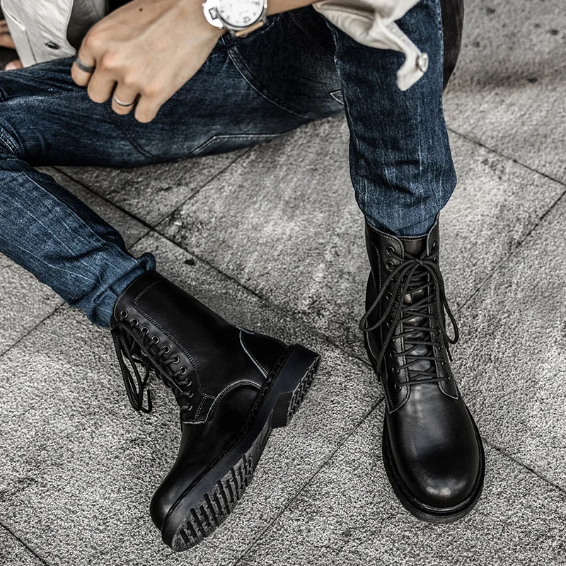 Ботинки мужские мотоциклетные из натуральной кожи, тактические ботильоны в стиле милитари для охоты и пустыни, черные зимние ботинки-дезерты