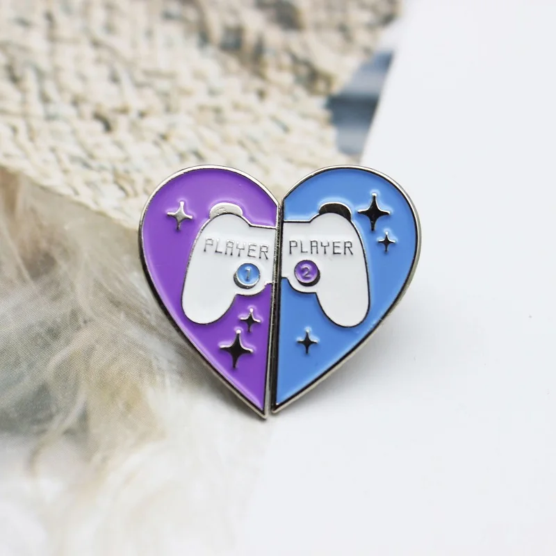 Брошь в форме сердца с изображением игрока, эмалированная брошь в ф...