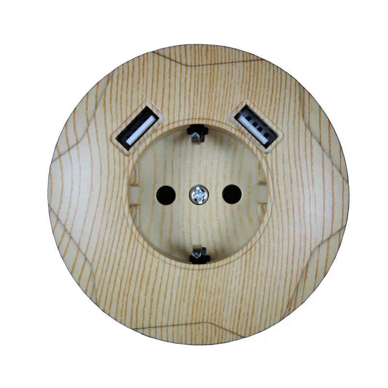 Настенная розетка с двумя USB-портами, 5 В, 2 А, деревянное дерево,...