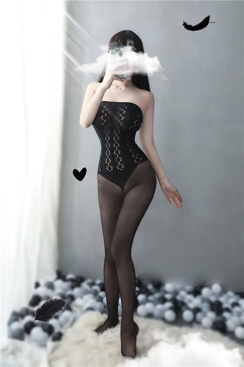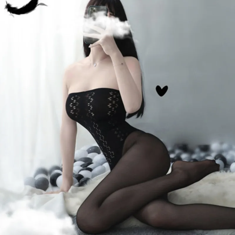 Пикантное прозрачное Боди без бретелек, колготки, ультратонкие проз...
