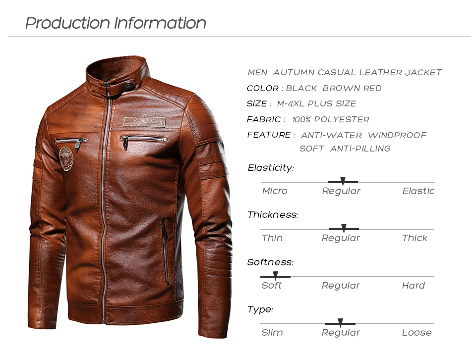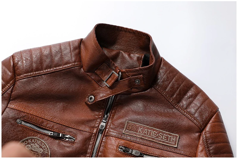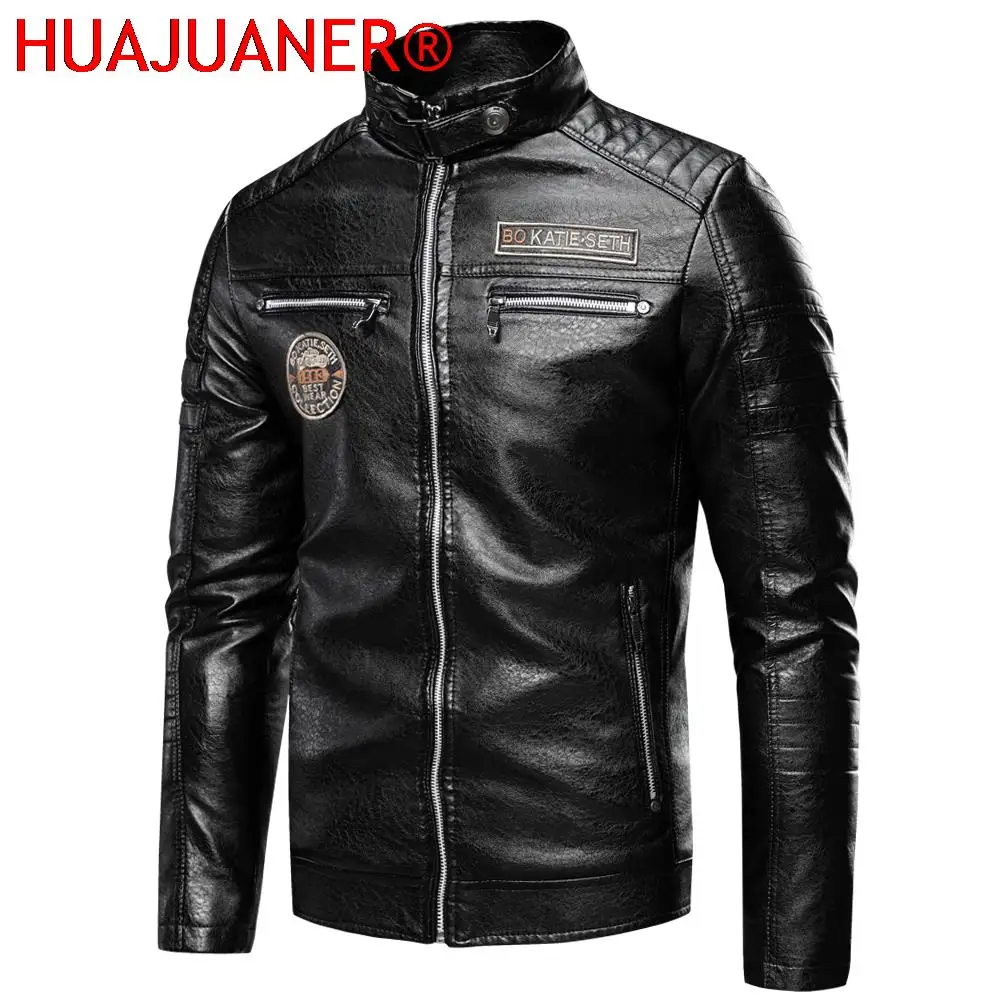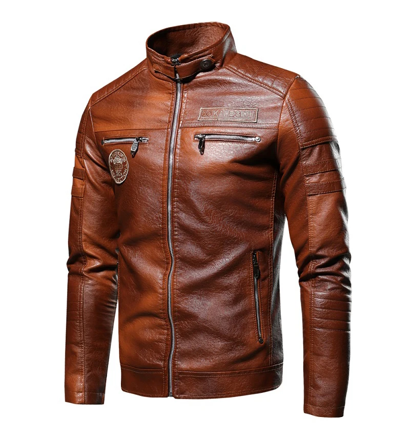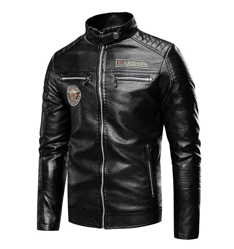 Type 2Men Winter Casual Embroidery Leather Jacket Coat