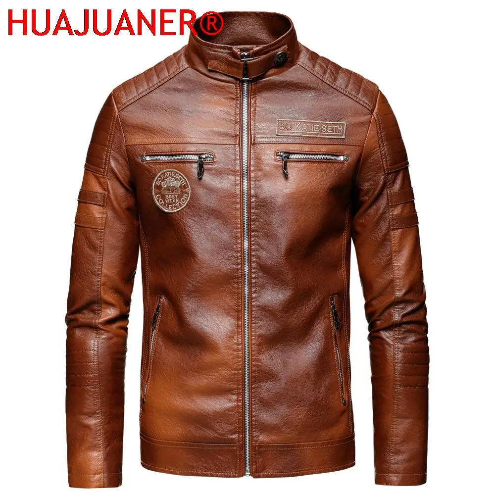 Мужская повседневная куртка из потертой кожи, винтажная верхняя одежда из искусственной кожи, Осень-зима 2022