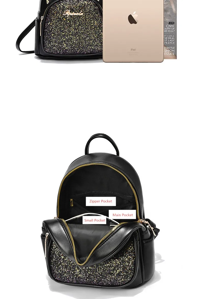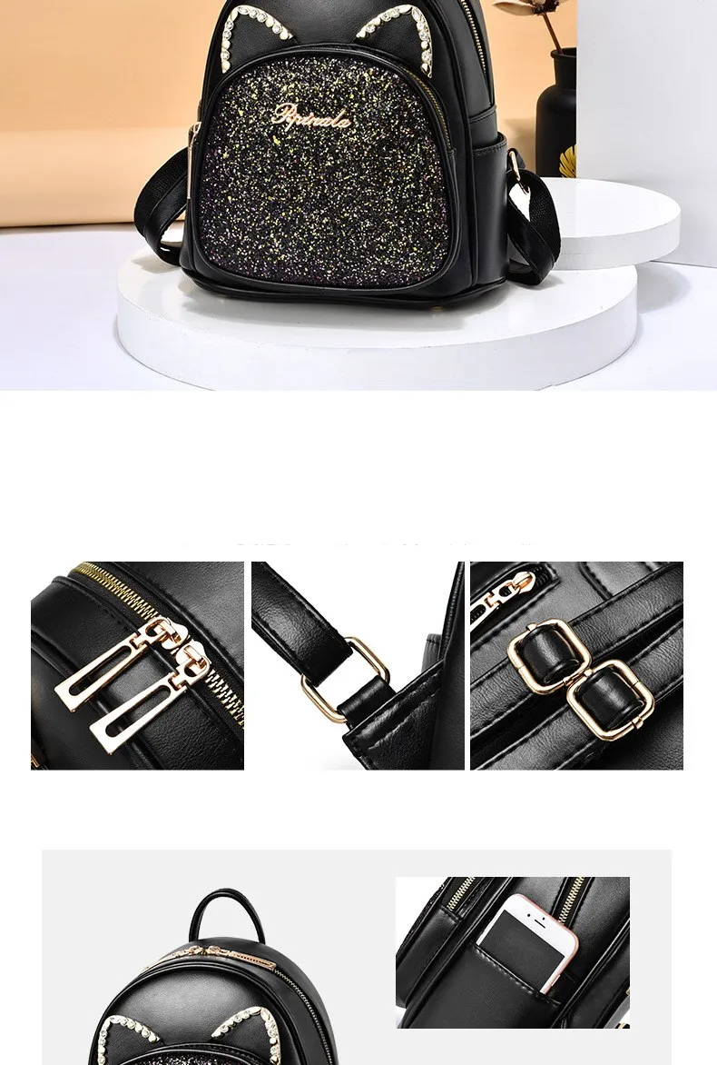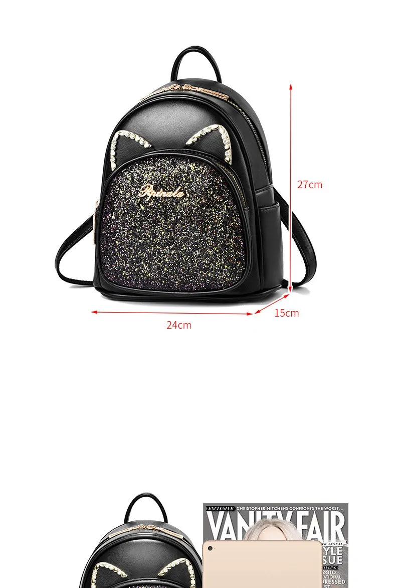 Рюкзак женский кожаный, стразы 2021, с блестками и изображением кошки