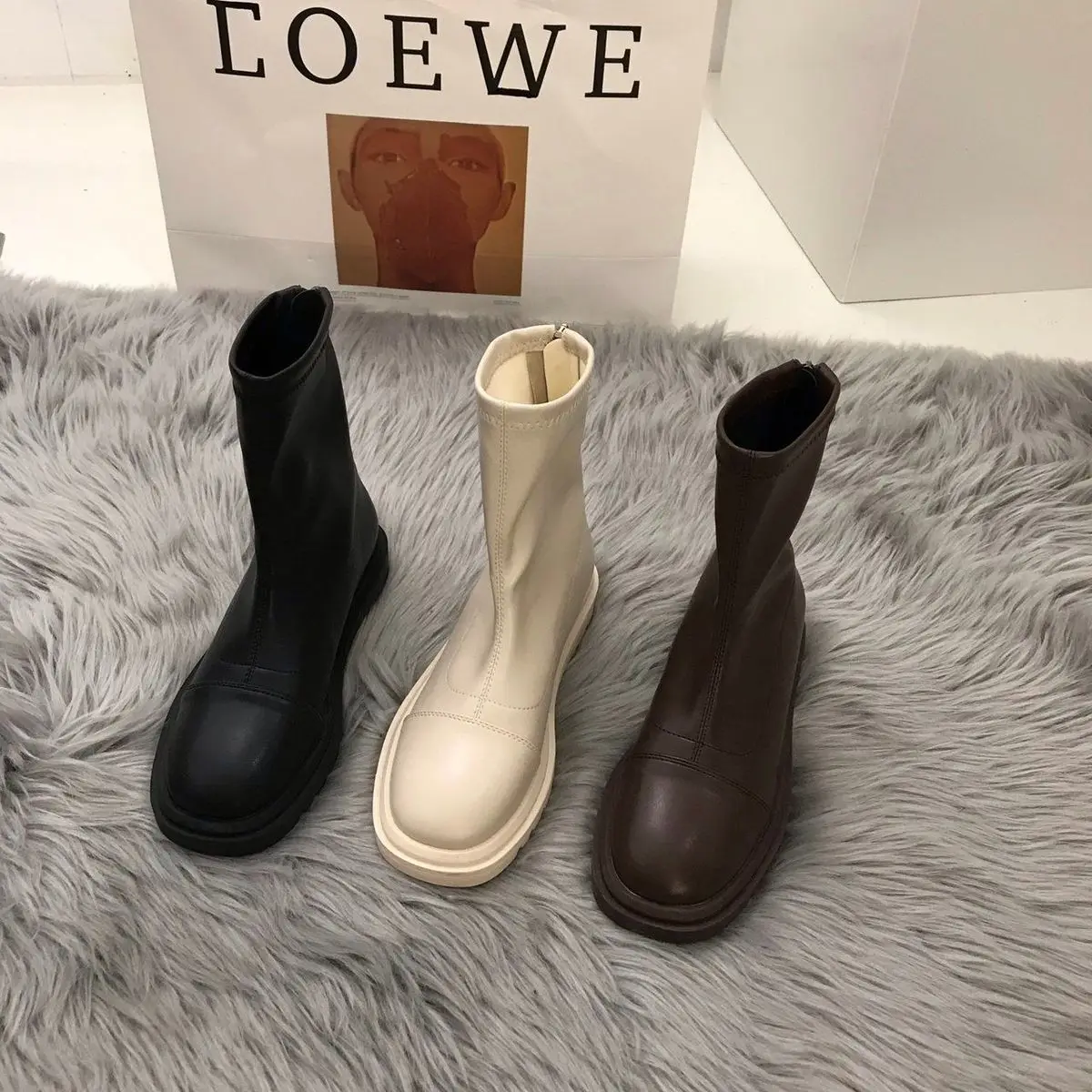 Модные женские ботинки; Сезон весна; Коллекция 2021 года; Элегантные белые Ботильоны на молнии сзади; Женские кожаные черные ботинки; Женские короткие ботинки на низком каблуке