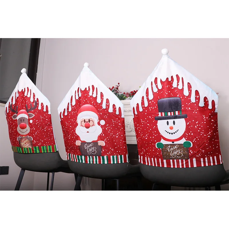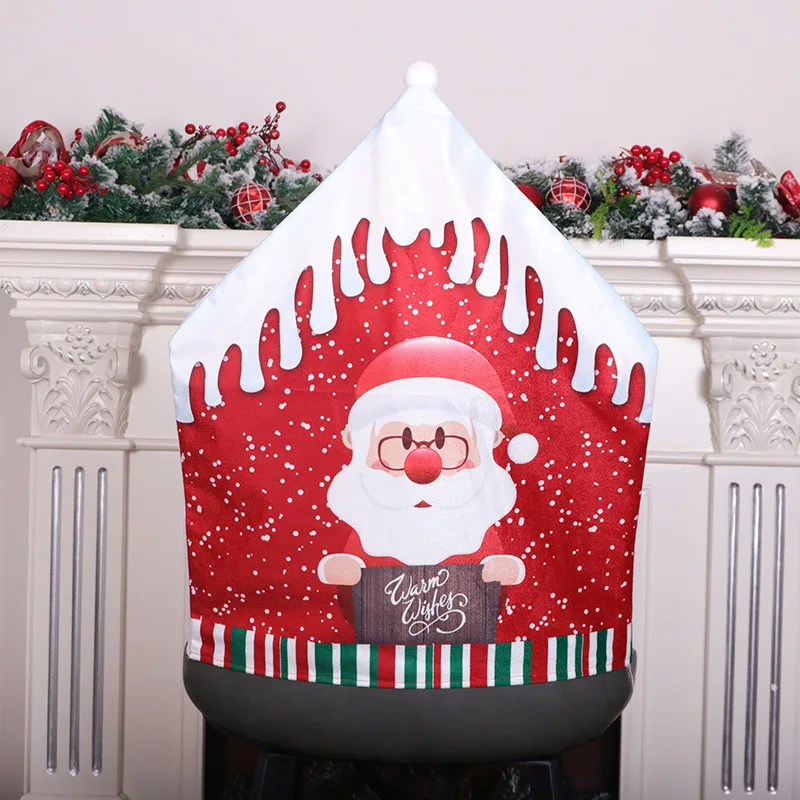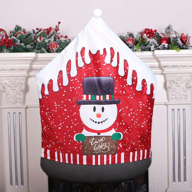 Рождественское снежное покрытие для стула Санта Клаус Снеговик праздничные вечерние чехлы на спинку для обеденного стула рождественские украшения