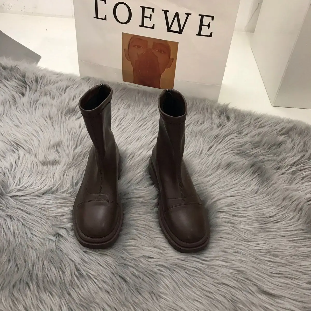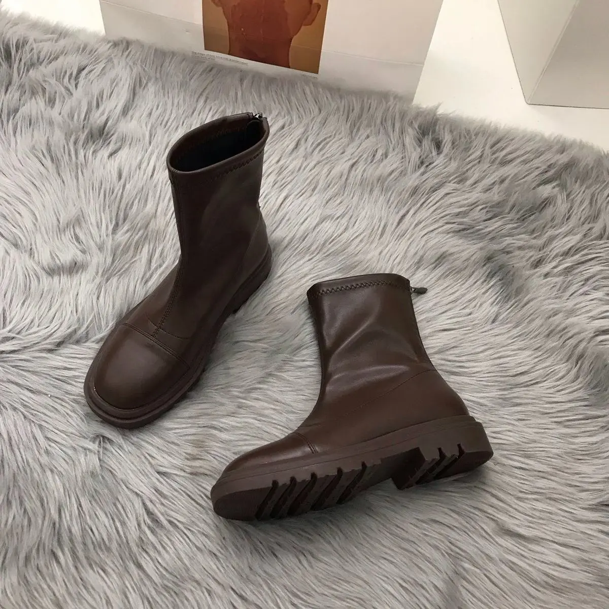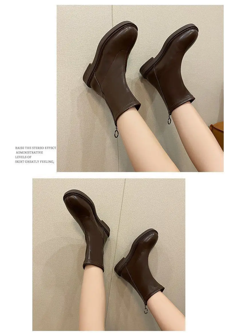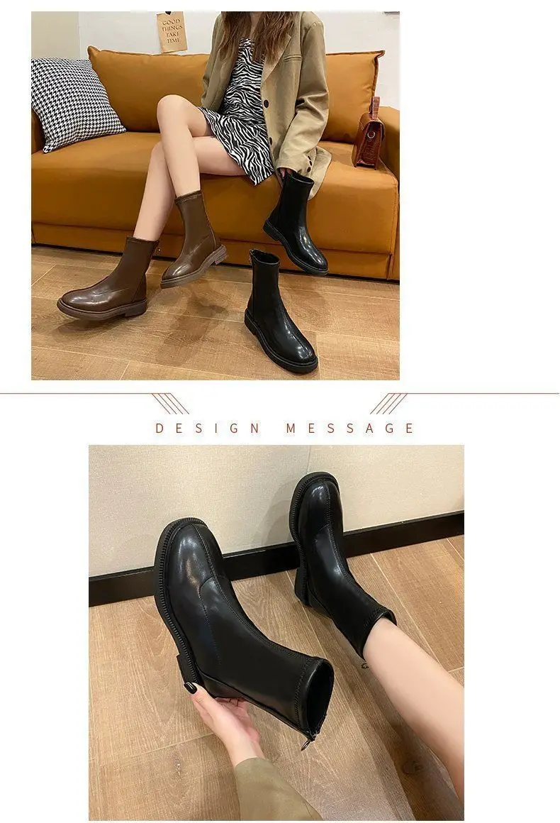 Женские ботильоны на низком блочном каблуке, весна 2022, женские ботильоны челси с круглым носком и молнией сзади, высококачественные короткие искусственные ботинки