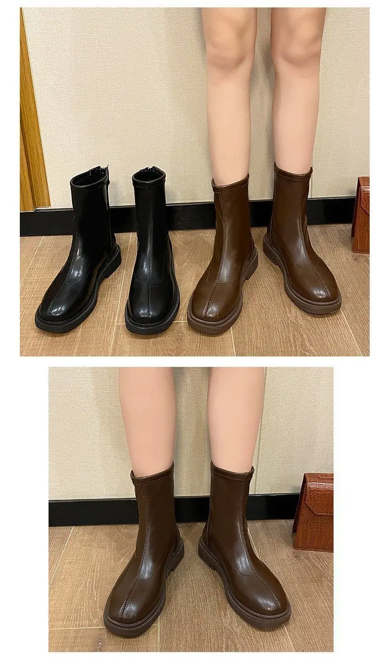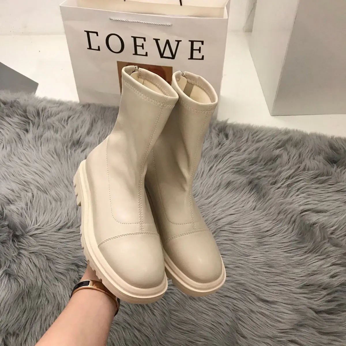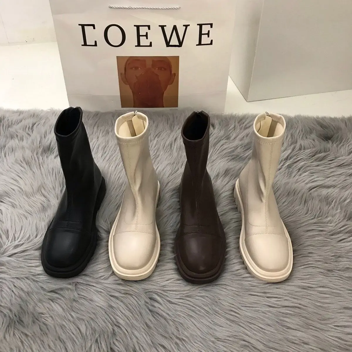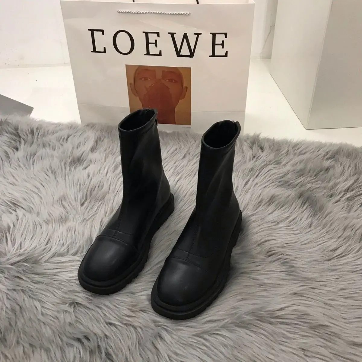 Женские ботильоны на низком блочном каблуке, весна 2022, женские ботильоны челси с круглым носком и молнией сзади, высококачественные короткие искусственные ботинки