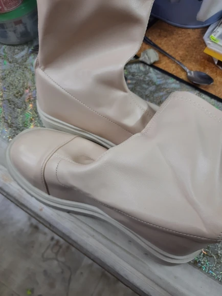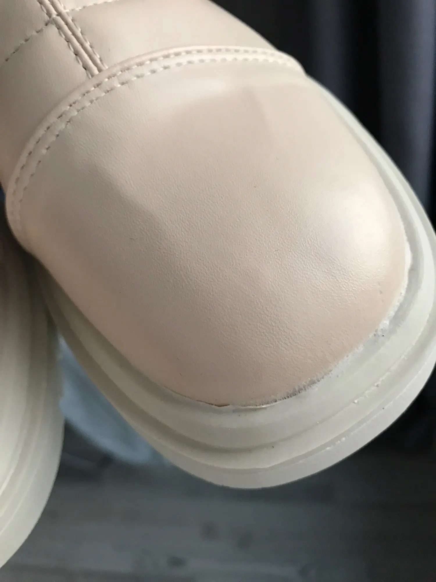 так, отзыв о ботинках за 1300: ботинки хорошие, да, есть клей, да заметен, но он уйдёт после первой прогулки по грязным улицам России, в любом случае волновал момент цвета и задней фурнитуры, так как никаких фото молнии сзади нет. Цвет крутой, они довольно тонкие, но хорошо сидят, прям как носочки, фурнитура хорошая, не пластик - а железо. Подошва твёрдая. За 1300 огонь! 9/10! Не десятка потому, что пришли без коробки, в обычном пакете!