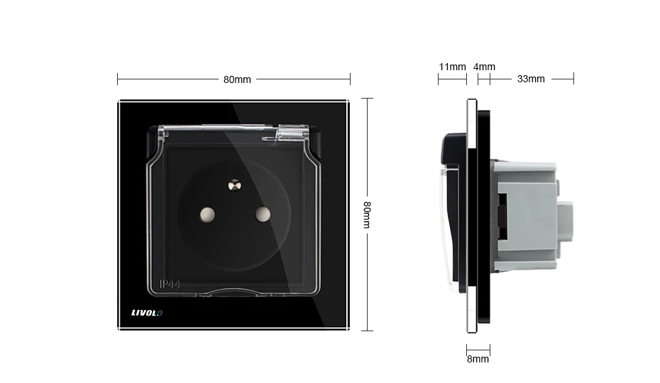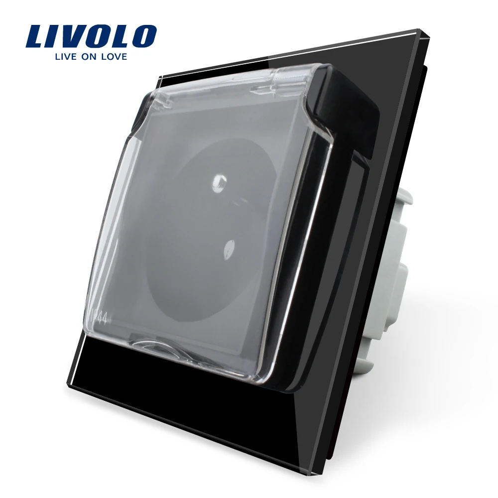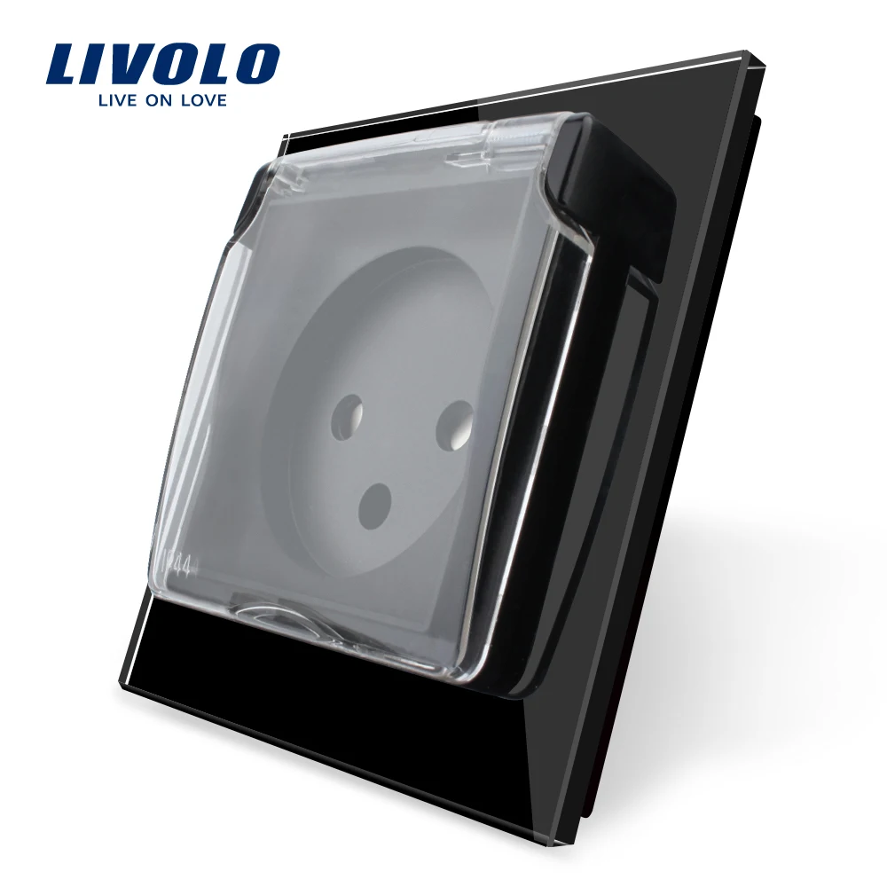 Евророзетка Livolo, Французская электрическая розетка, панель из хрустального стекла, вилки 16 А, с водонепроницаемой крышкой, без логотипа, черная, бесплатная доставка