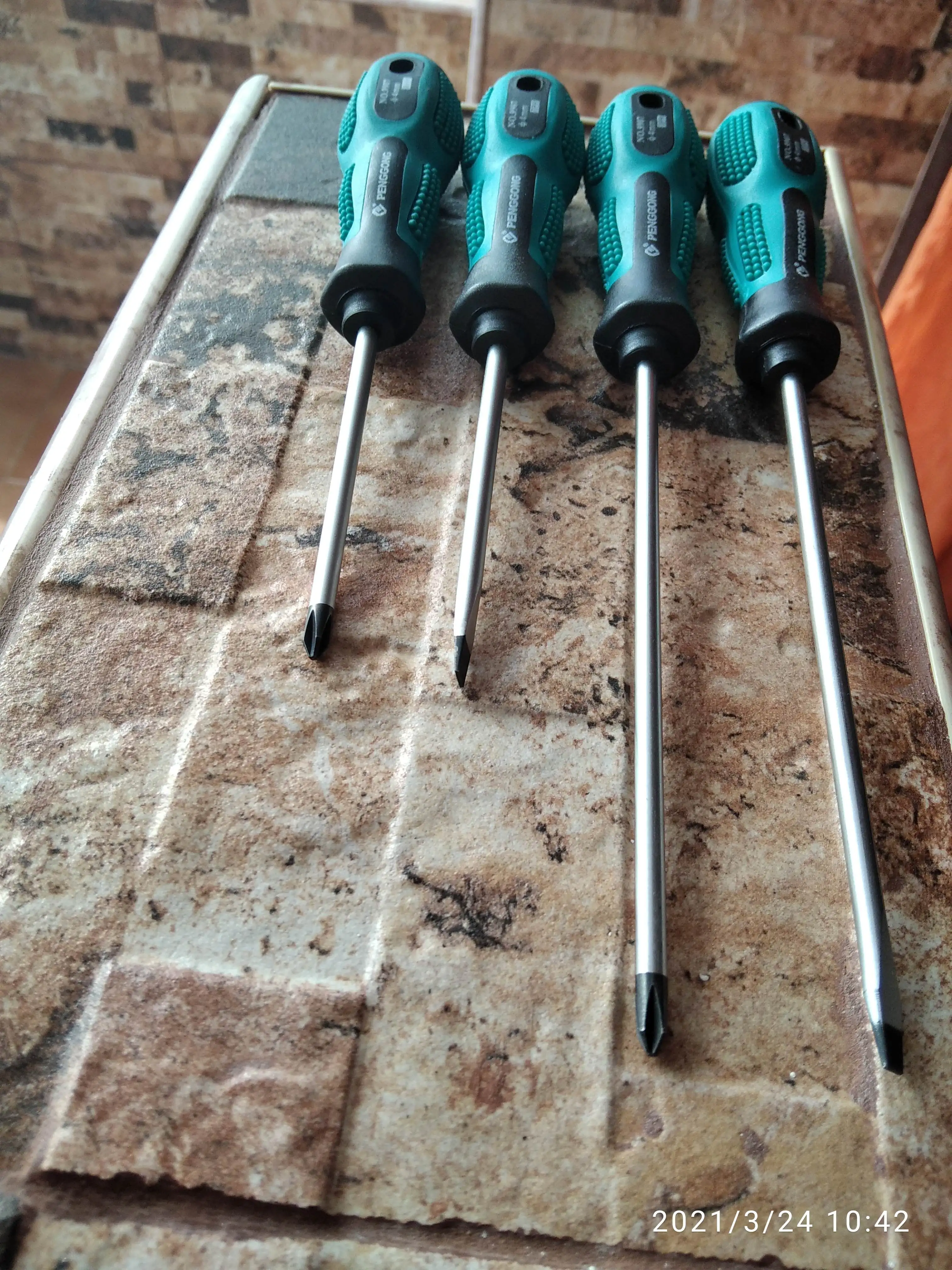 Красивые отвертки, они 4 миллиметра, идеально подходят для электрика или маленьких зажимов, это плоский, он очень ценится и превосходного качества, я рекомендую его, я опаздываю и без последующих действий, привет.