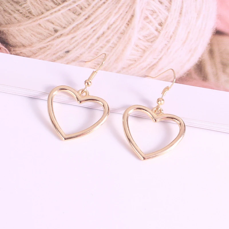 Полые геометрические серьги в форме сердца, простые милые серьги в форме сердца для женщин, модные уши, пирсинг для манжет, висячие серьги, подарок