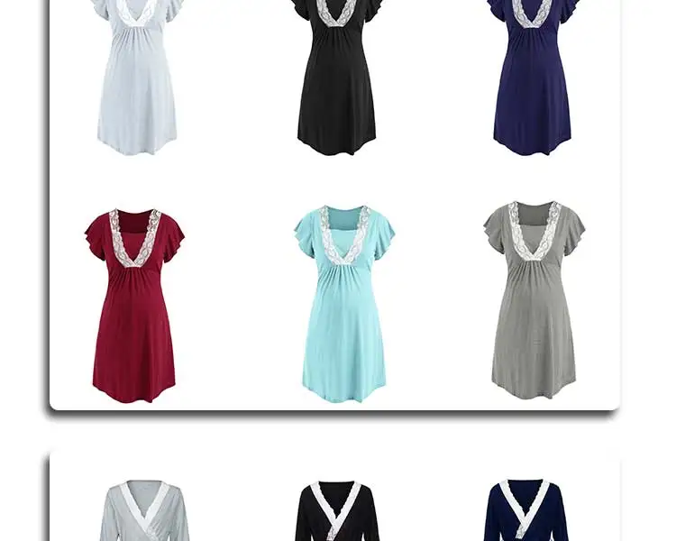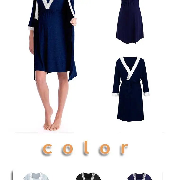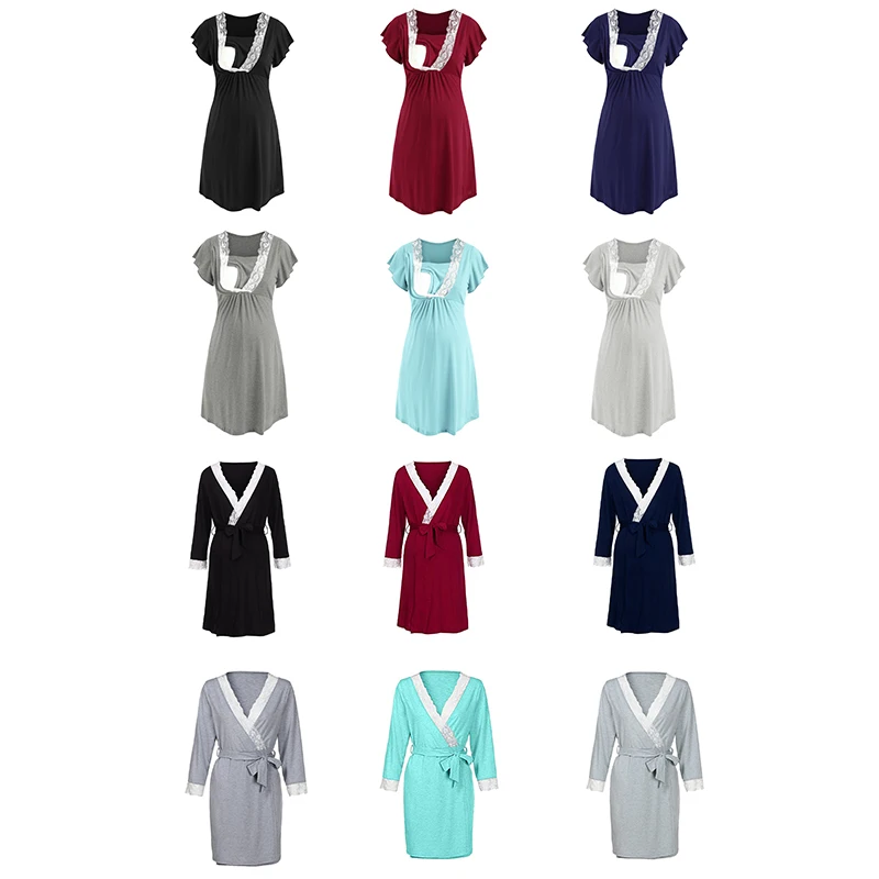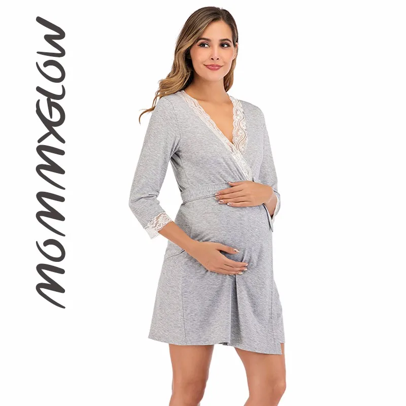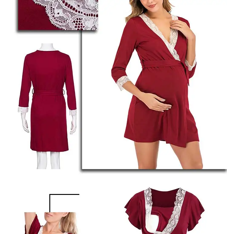 Ночная рубашка для беременных и кормящих женщин, кружевная Пижама