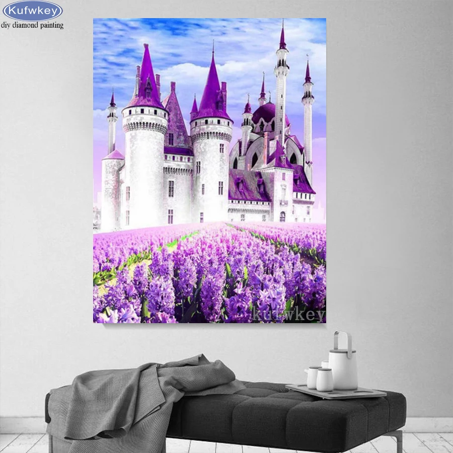 Полностью квадратная дрель Алмазная картина сад замок 5d Сделай Сам картины Стразы Лавандовый весенний пейзаж Алмазная вышивка мозаика