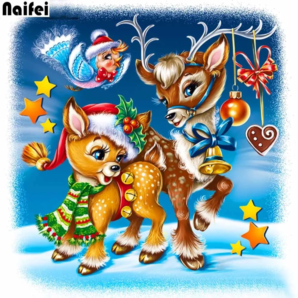 Алмазная мозаика полностью квадратная/круглая дрель 5D DIY Алмазная картина "Рождественский олень" 3D Алмазная вышивка крестиком домашний декор