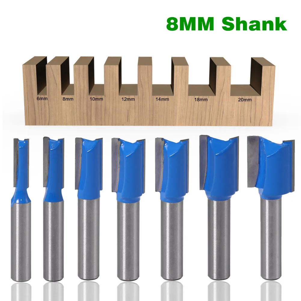 1 шт. 8 мм хвостовик столярные фрезы прямой деревообрабатывающий фрезерный станок Набор бит 681012141820 мм Диаметр резки