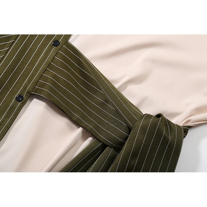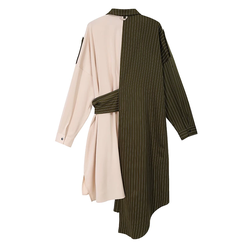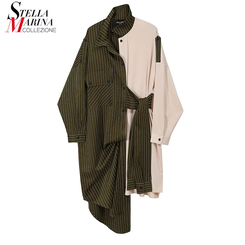 Новая женская одежда, Хит, цветной дизайн, плюс размер, Осеннее асимметричное платье-рубашка, с длинным рукавом, в полоску, с поясом, для девушек