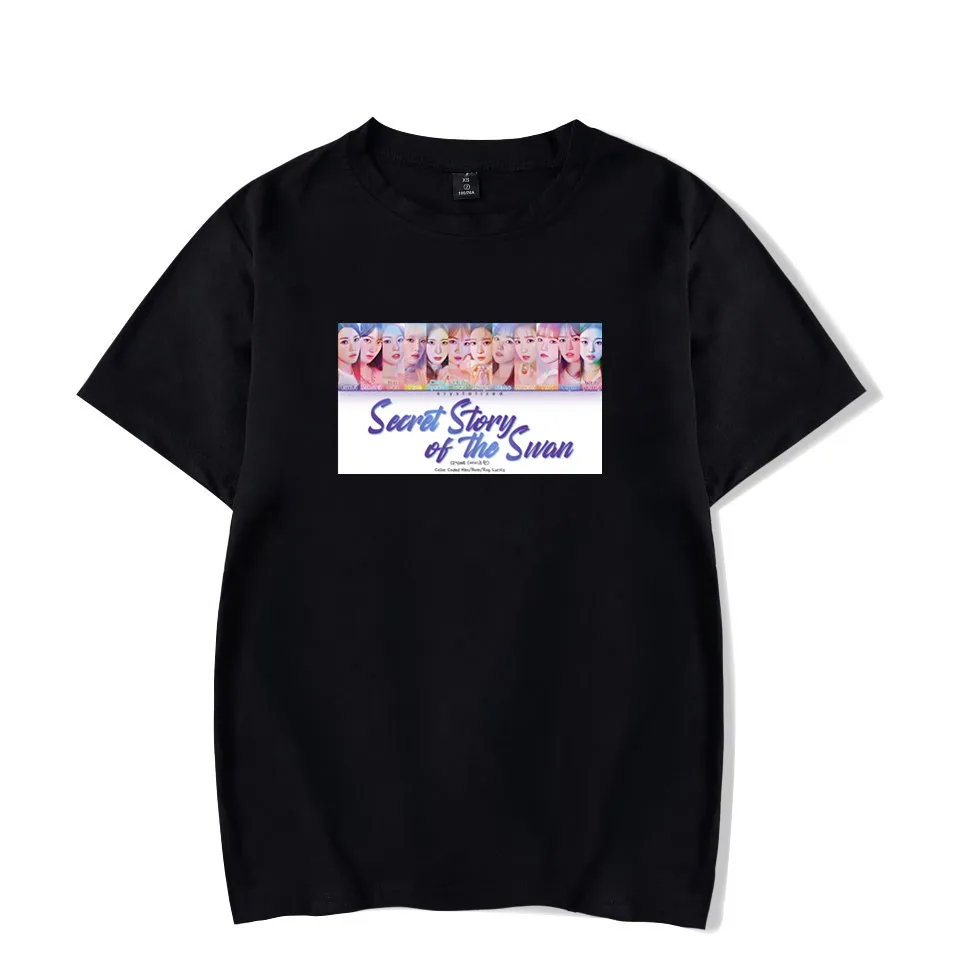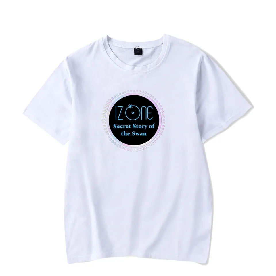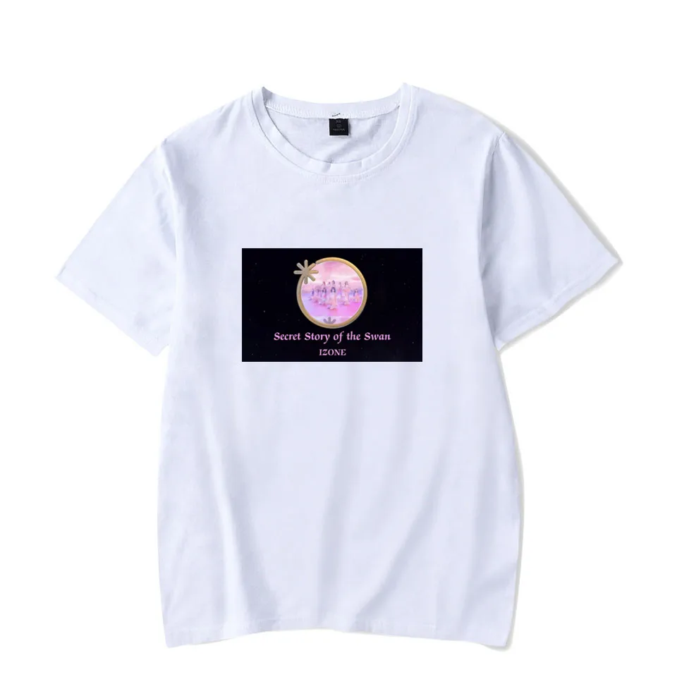Футболка IZONE Secret of The Swan с принтом, 100% хлопок, короткий рукав, круглый вырез, уличная одежда, повседневный топ с О-образным вырезом, на лето