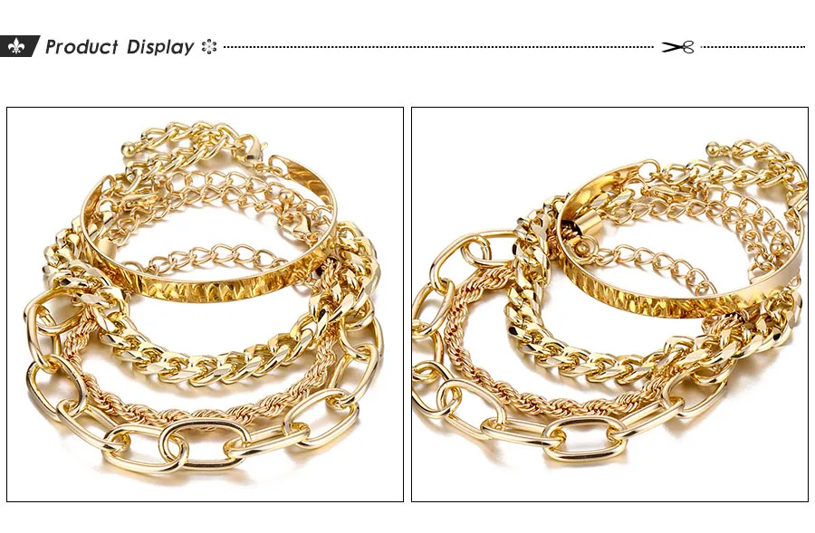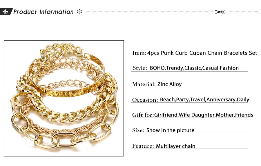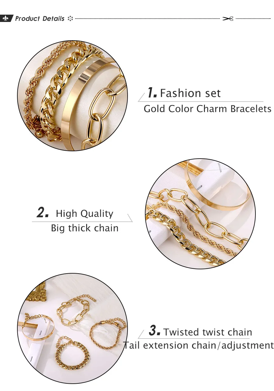 Набор женских браслетов с кубинской цепочкой VKME, 4 шт.