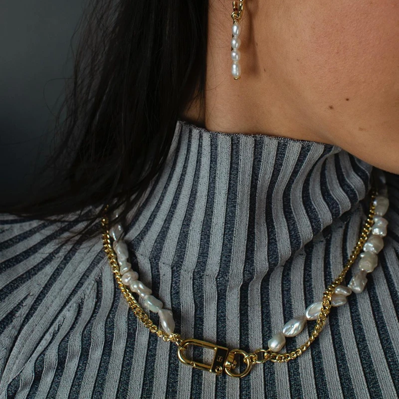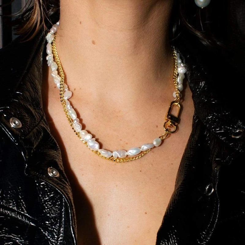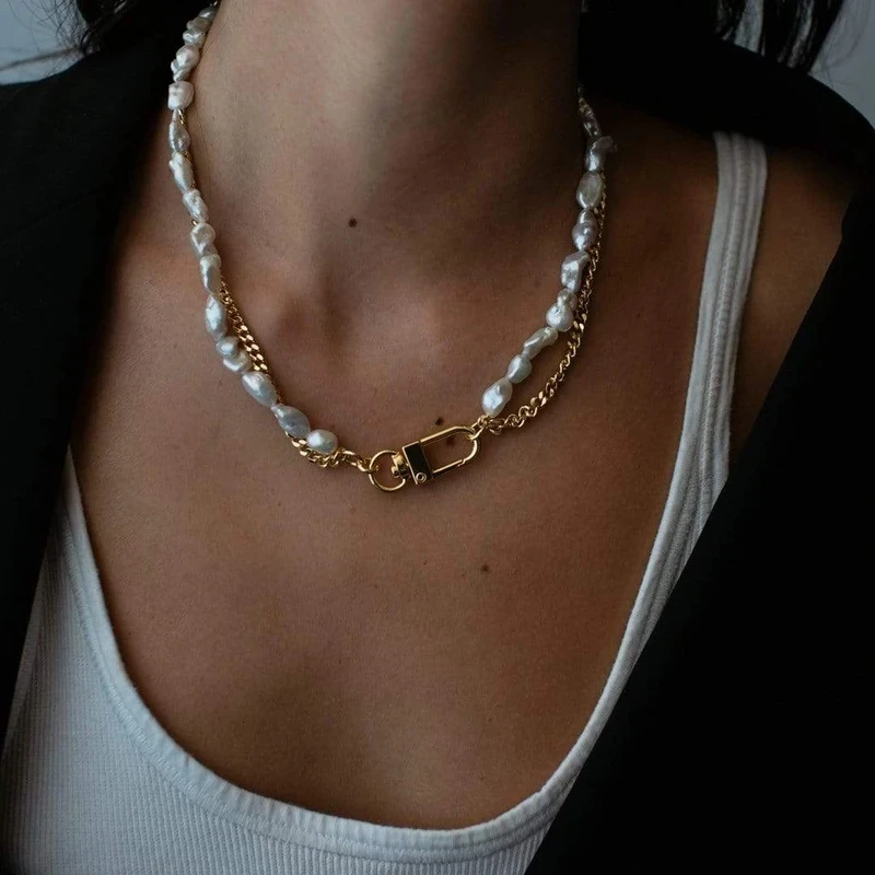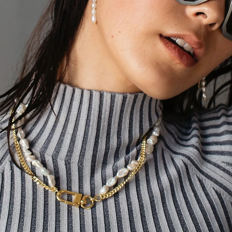 Ожерелье с цепочкой и натуральным жемчугом, Женские Ювелирные изделия, дизайнерское подиумное Платье T-Show, милое платье в стиле бохо, японский, корейский, готический тренд
