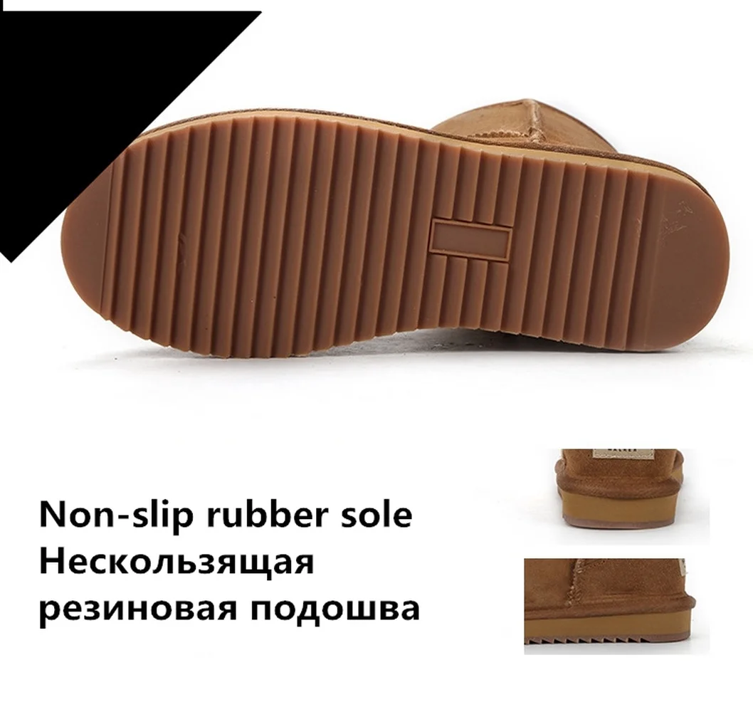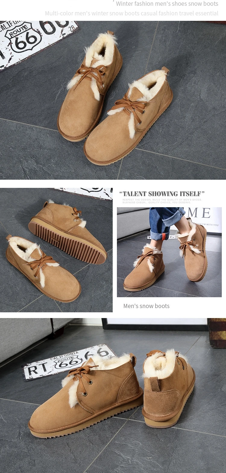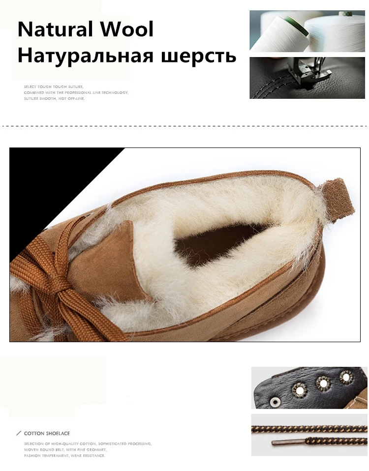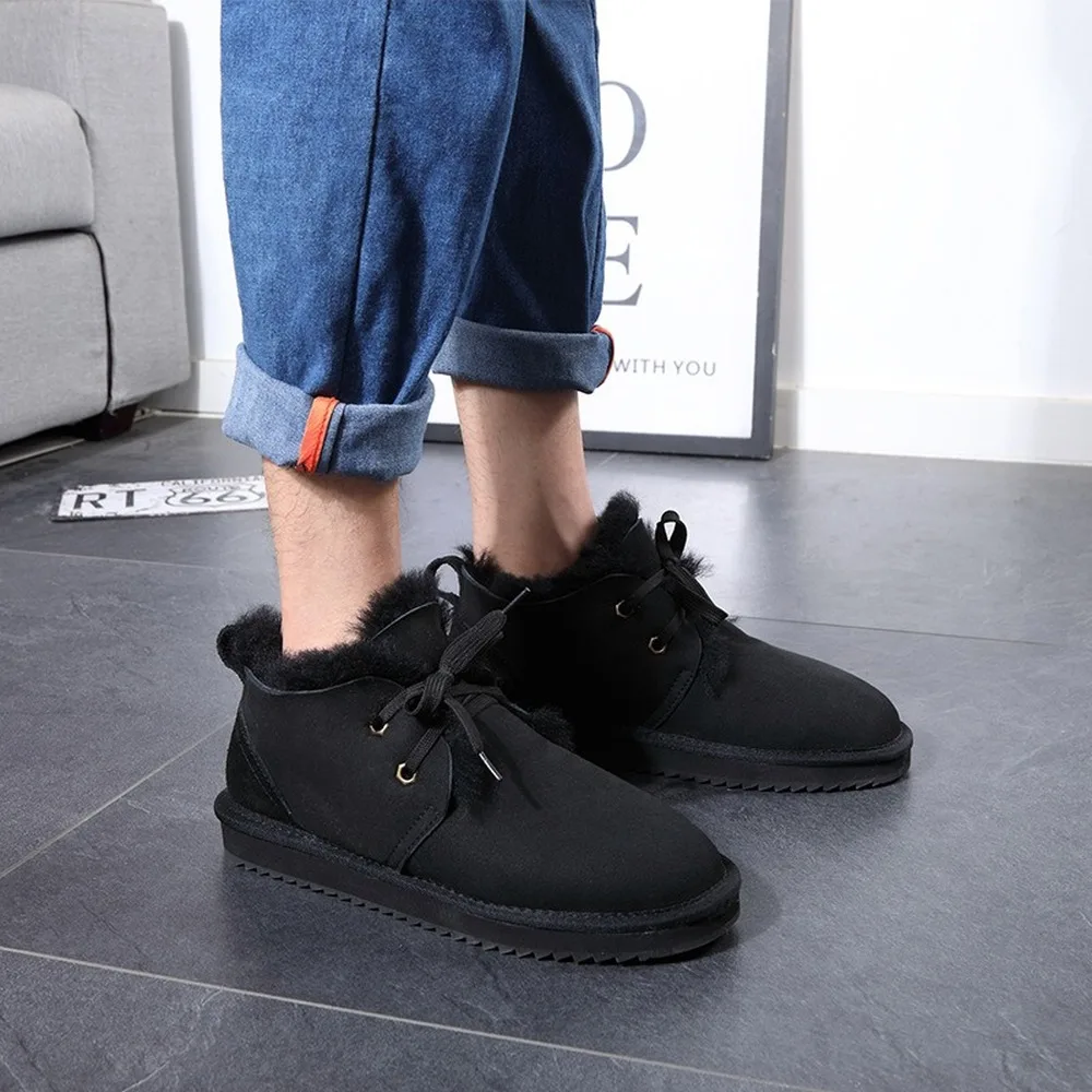 Ботинки мужские из овечьей кожи, с мехом, Нескользящие, зимние