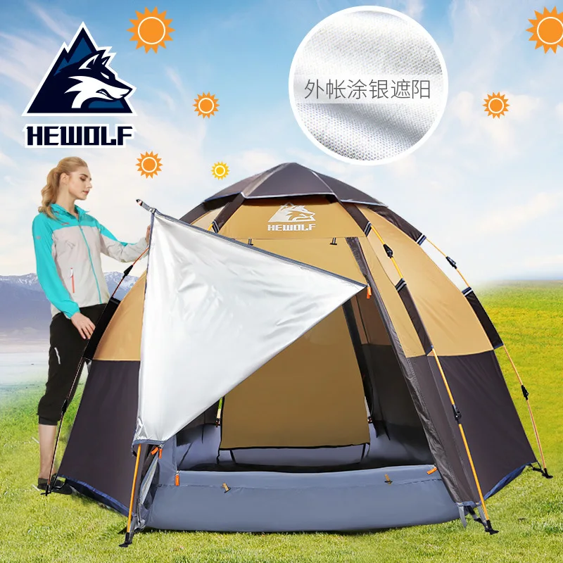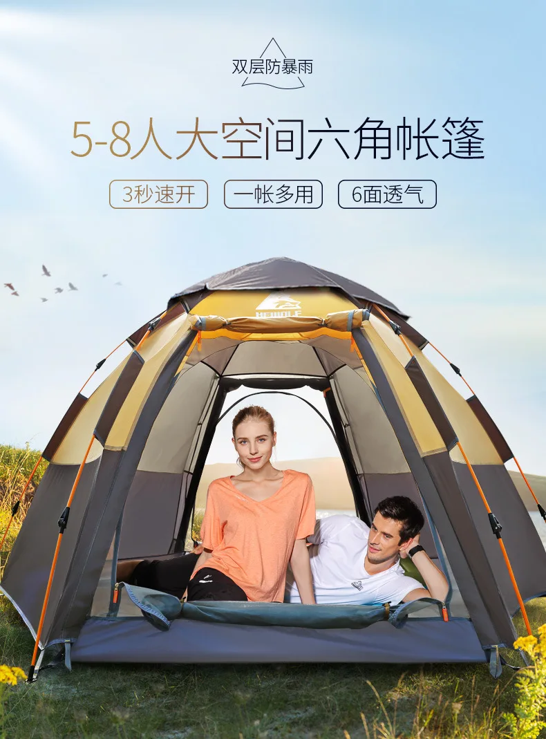 Палатка Hewolf туристическая шестигранная, на 5-8 человек, автоматическая, водонепроницаемая, большая, для всей семьи