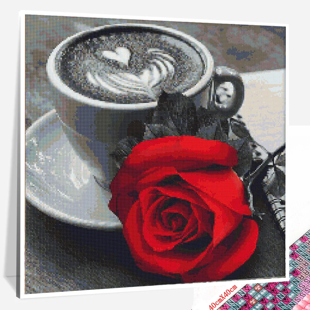 Huacan алмазная вышивка полная выкладка розы цветы Алмазная мозаика кофе рукоделие декор для дома