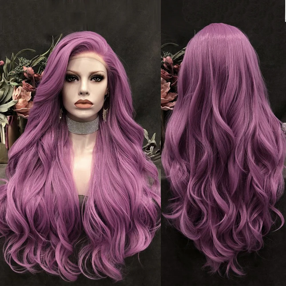 Парик длинные волнистые для женщин, синтетические волосы оранжевого фиолетового цвета, на шнуровке, без клея, Термостойкое волокно, повседневный