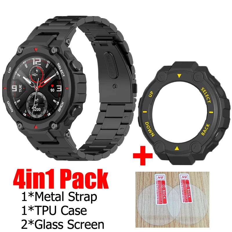 Металлический ремешок 4 в 1 для Amazfit T-Rex PRO, спортивный ремешок для Xiaomi Amazfit T-REX, чехол для умных часов, браслет + стеклянный экран
