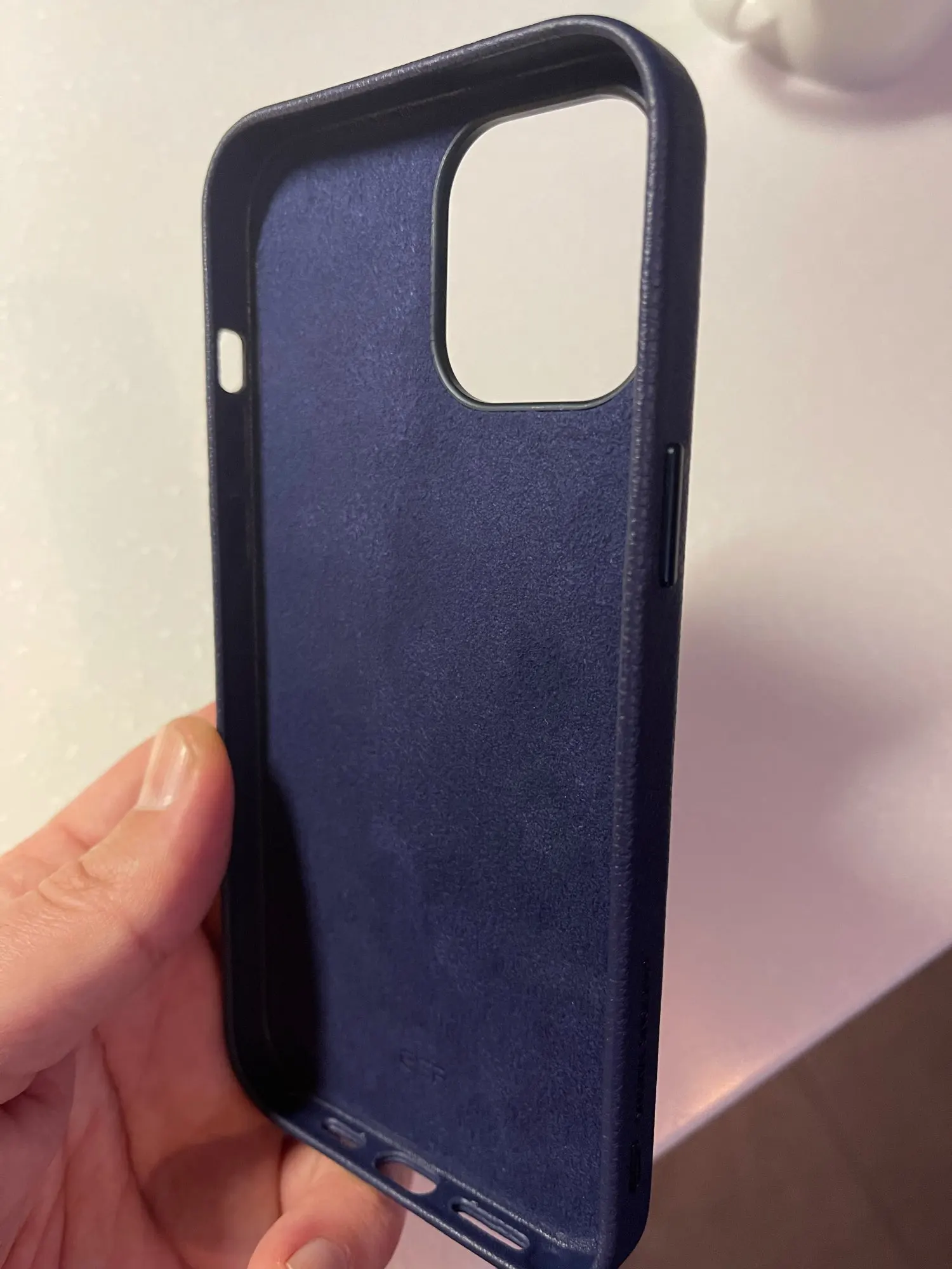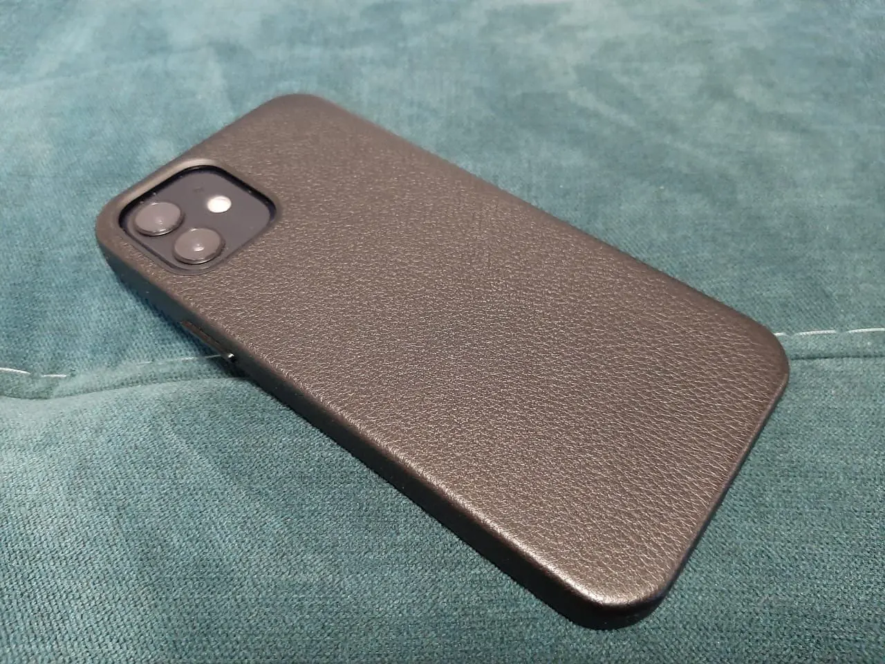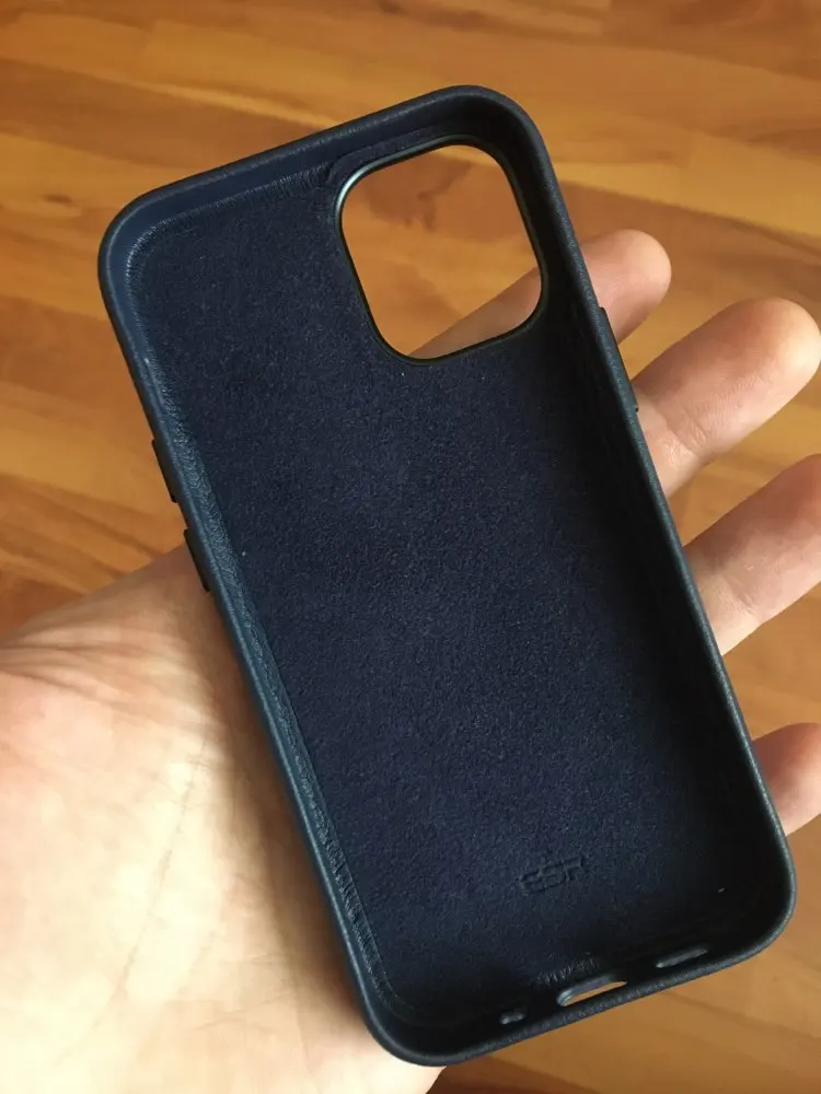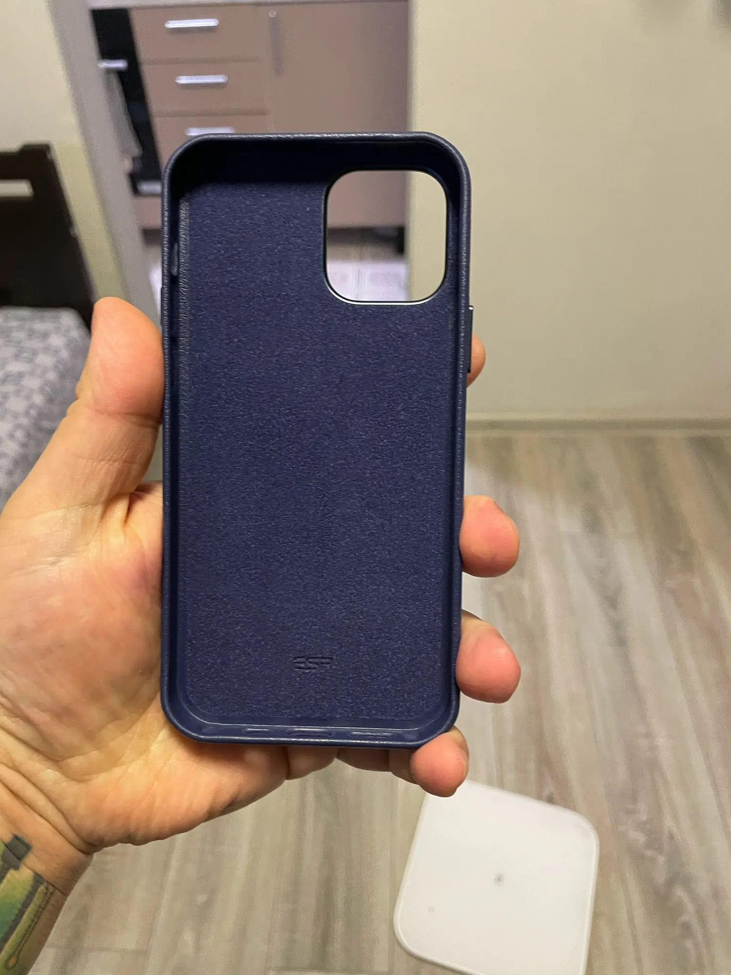 Однотонный чехол, выглядит как натуральная кожа. Внутри материал мягкий, замша нравится. Слишком плохо, у него нет вставленных магнитов для magsafe, но по-прежнему крутой чехол.