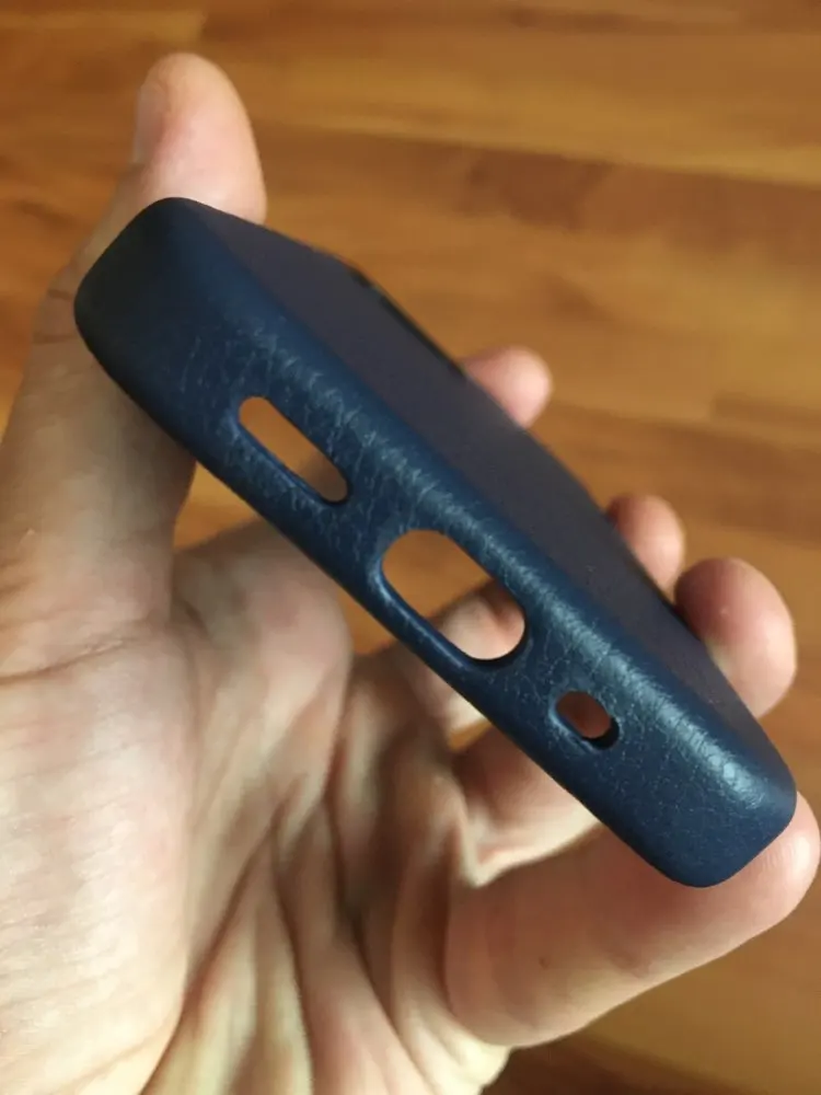 Замечательный чехол, выступ камеры и экран спрятаны, сам по себе легкий с отчетливыми алюминиевыми кнопками. В руке сидит отлично но слегка скользкий, возможно это со временем пройдет. Хорошая альтернатива оригинальному кожаному чехлу за вменяемые деньги.