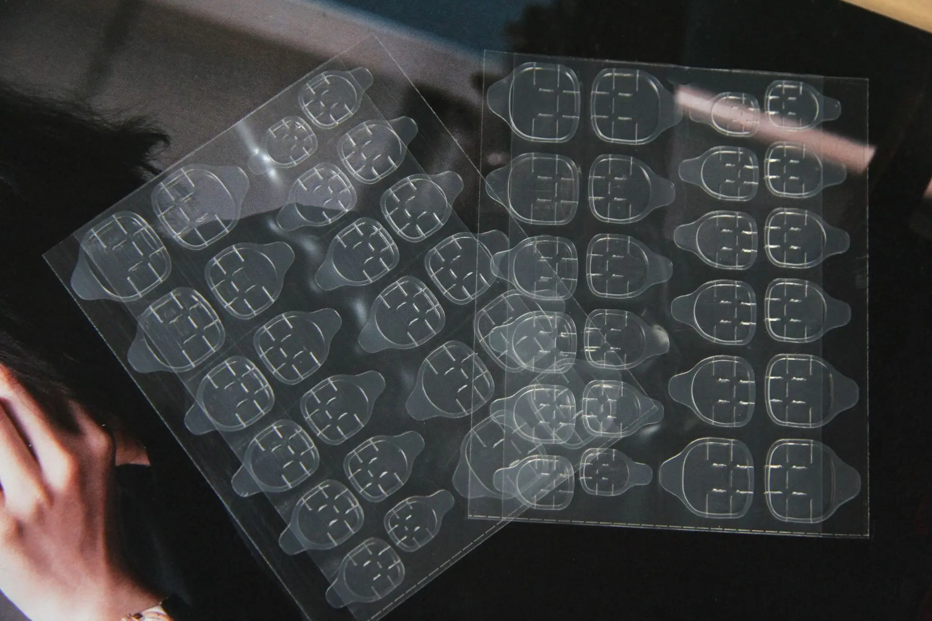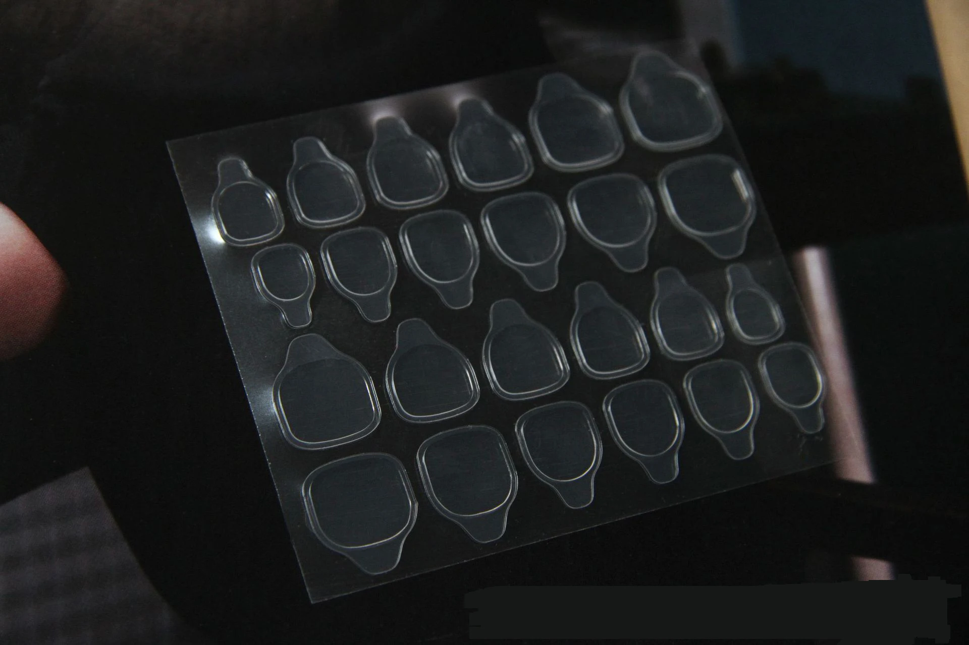 Характеристика:Количество: 5 листовМатериал: клейкая лентаРазмер: 7*8 смЦвет: прозрачный, желтыйПрименение: 6 размеров для пальцев, 8 размеров для ногКак использовать:Выберите наклейку, которая подходит для накладных кончиков ногтей.Выньте наклейку и поместите ее на накладные ногти.Аккуратно нажмите на наклейку, чтобы не допустить образования пузырьков или зазора между наклейкой и накладным кончиком ногтей.Снимите защитный лист с наклейки.Поместите накладные ногти на палецНажмите на ложный кончик ногтя на палец и удерживайте его в течение 5 секунд.Чтобы удалить, намочите палец в теплой воде, аккуратно Отодвиньте ложный кончик ногтя с пальца.Посылка:1X5 листов