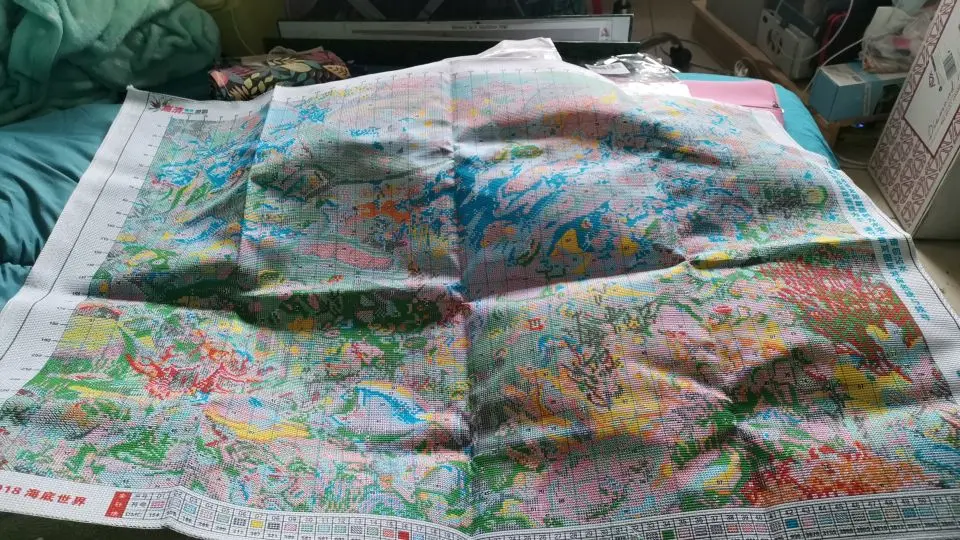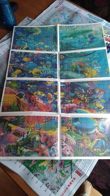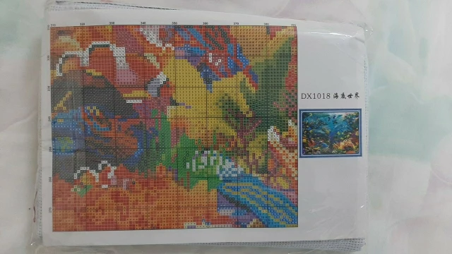 Заказала 11.11.20, пришёл 22.11.20 в пункт выдачи заказов. Цена - 1080,49 со всеми скидками. Набор нереально красивый! Яркие цвета, точная печать на канве. Картина будет просто фантастической. В чёрной раме планирую сделать светильник (ночник), чтобы выглядела как аквариум. Самое то для релакса и медитации!
