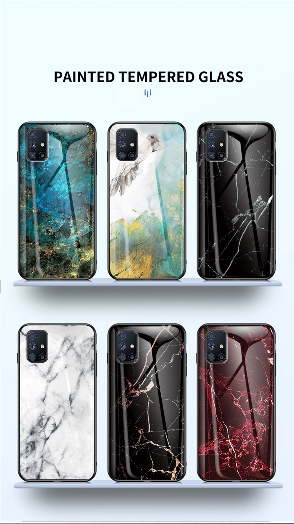 Мраморный чехол для телефона из закаленного стекла для Samsung Galaxy M51, M31S, M31, M21, M11, жесткая задняя крышка для Samsung M30S, противоударный чехол, чехлы