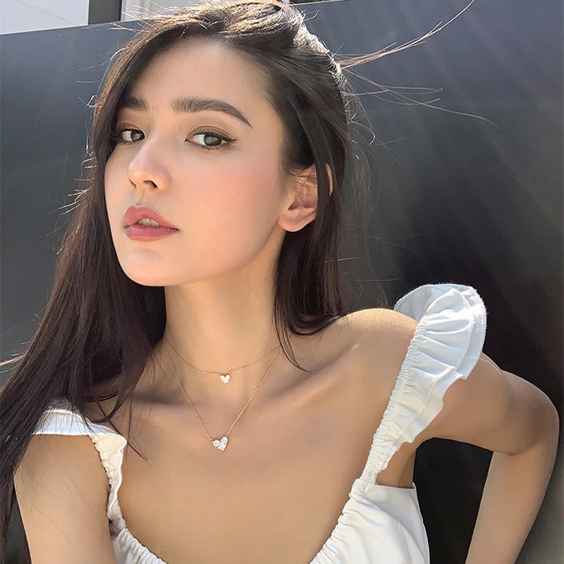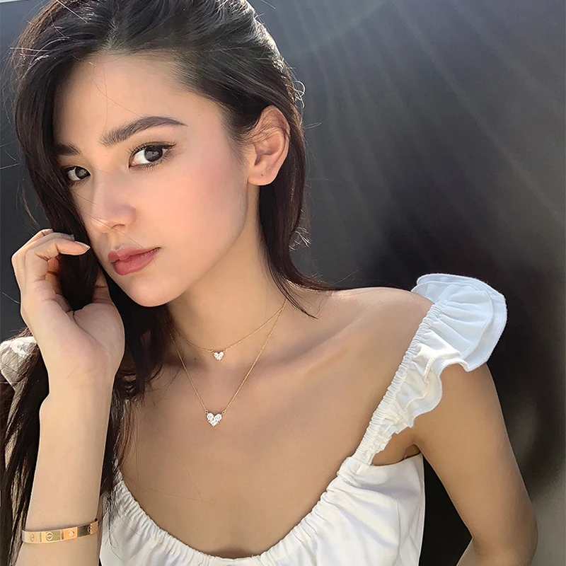 Ожерелье из стерлингового серебра 925 пробы с бриллиантами в форме сердца, колье золотого цвета, блестящее ожерелье из циркона ААА, свадебный подарок для женщин, изящная бижутерия