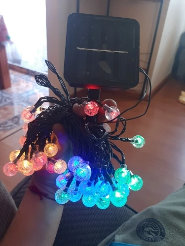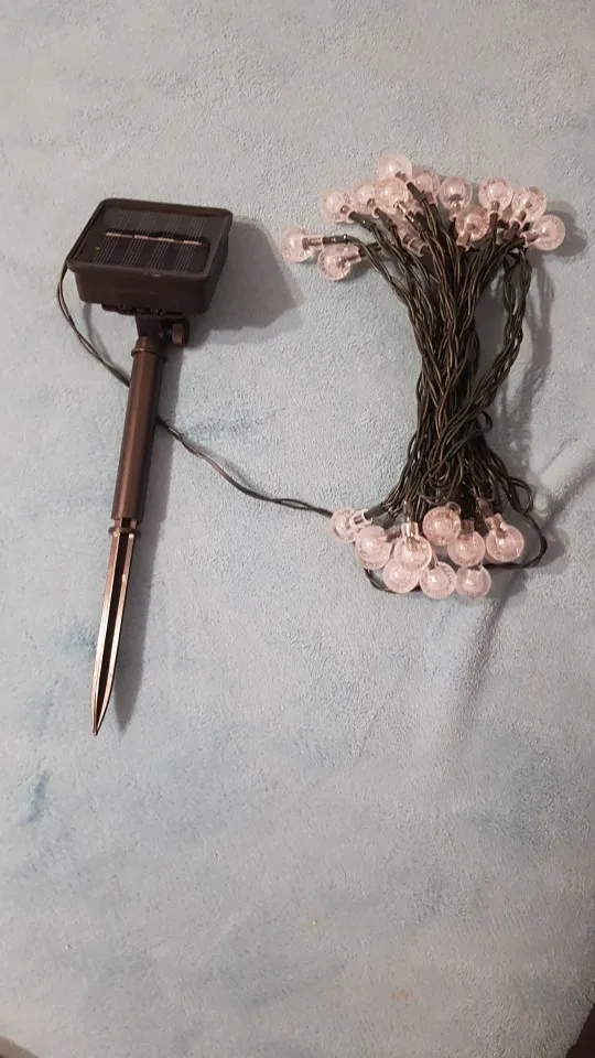 Доставка в течение 20 дней. Все работает. Солнечная панель заряжает, в темноте включается автоматически и включается/выключается. На фотографиях поставщика fed размеры шаров 2,4 см, и это неверно, потому что мой веревочный свет имеет диаметр шара приблизительно. 1,6 см :( (так "zonk"). Однако я рад и вижу, как долго будет работать. Обычно рекомендуется.