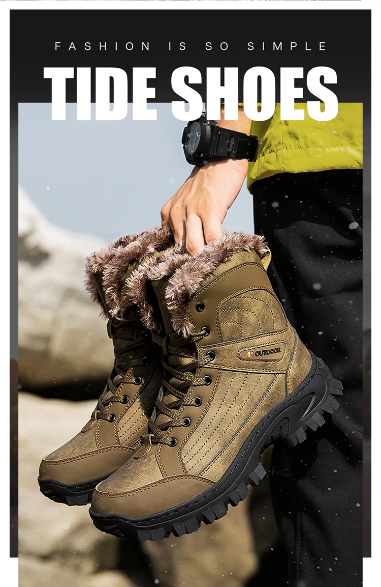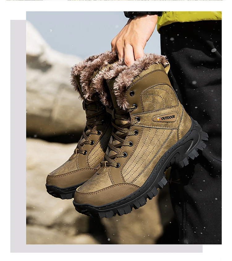 Мужские походные ботинки BETOOSEN, зимние водонепроницаемые ботинки с меховой подкладкой