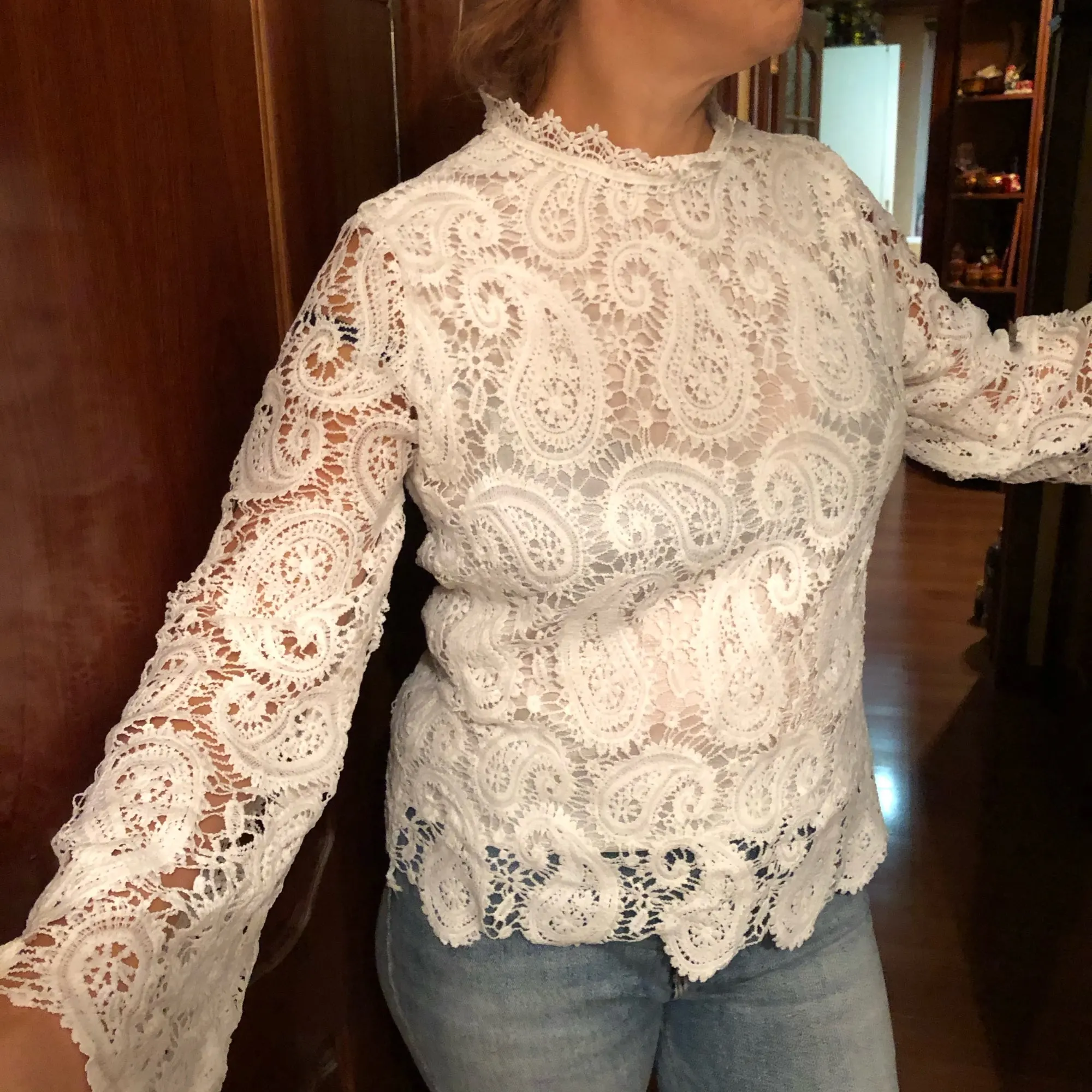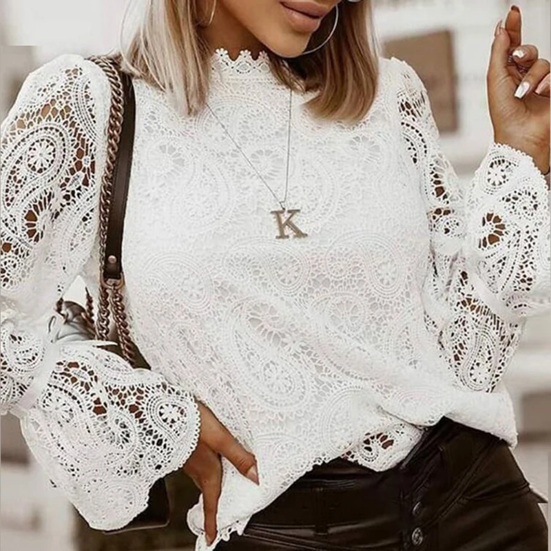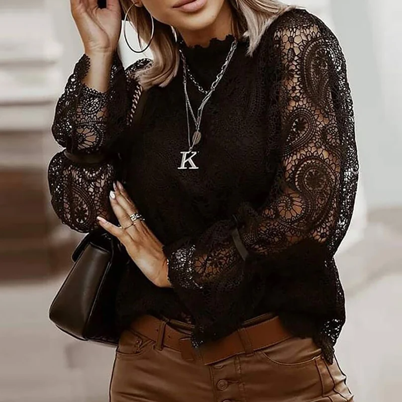 Женская кружевная блузка, однотонная, с воротником-стойкой