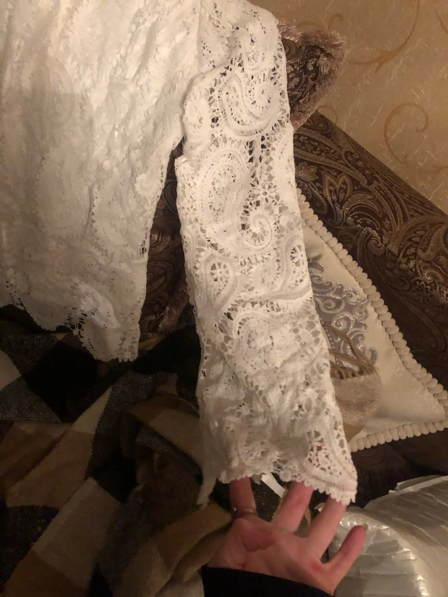 Мне очень понравилась, кружево очень красивое, торчали небольшие ниточки,но это не страшно. Кружево все целое,без дырок. Мой рост 173, чуть короткие рукава по запястье, мама померила с ростом 163,ей хорошо. Доставка быстрая до СПб 17 дней.